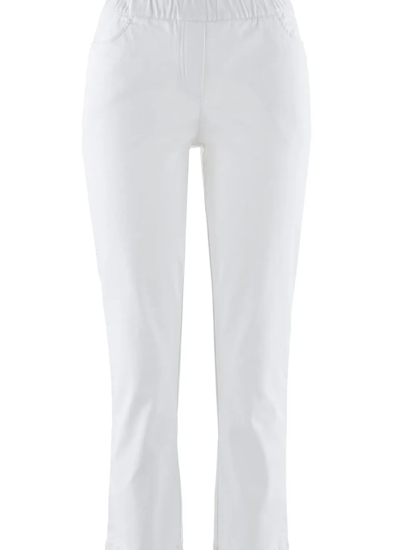 Coupe près du corps avec empiècement taille élastiqué, style 4 poches avec braguette décorative, long. entrejambe env. 64,5 cm, lavage machine.