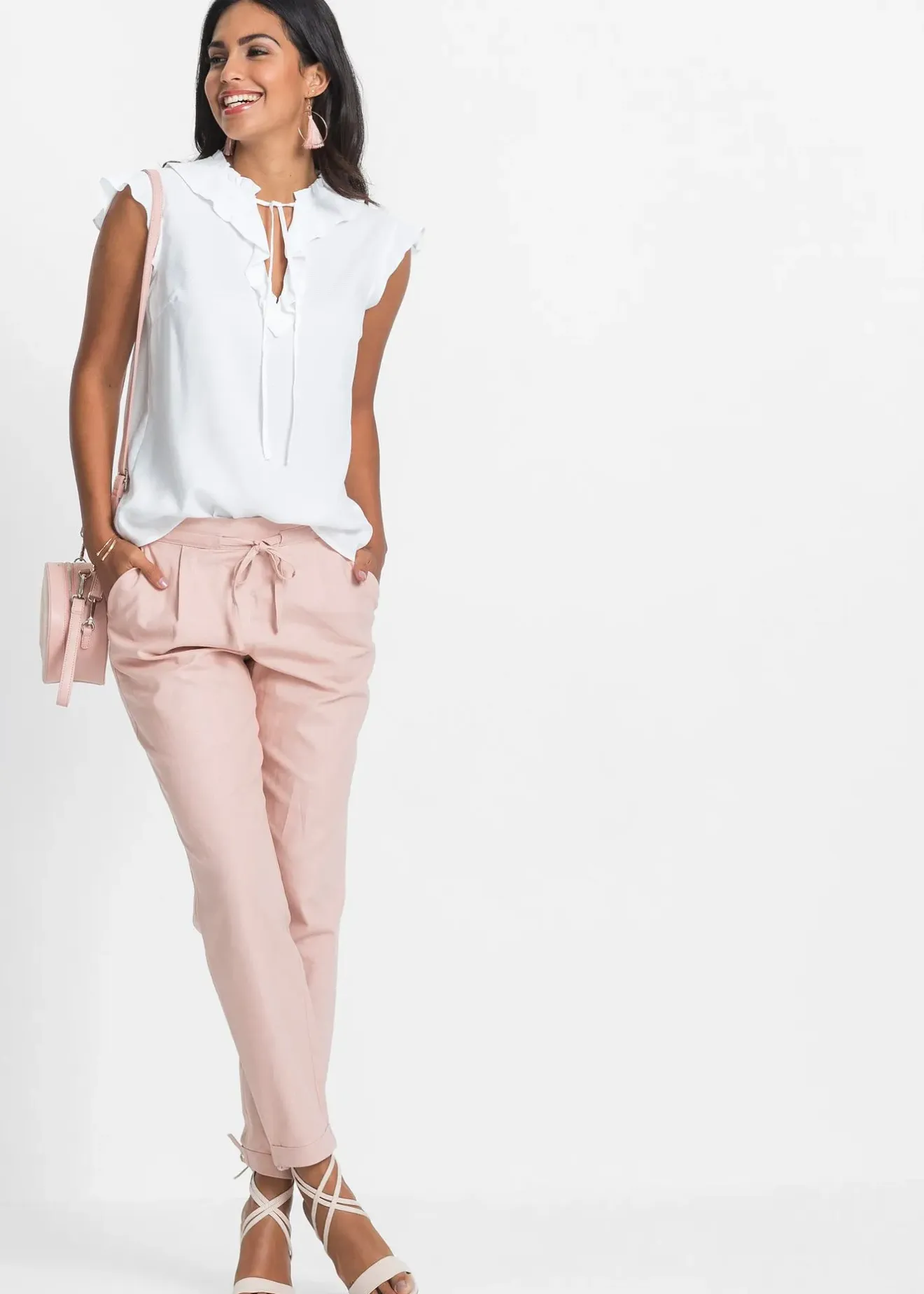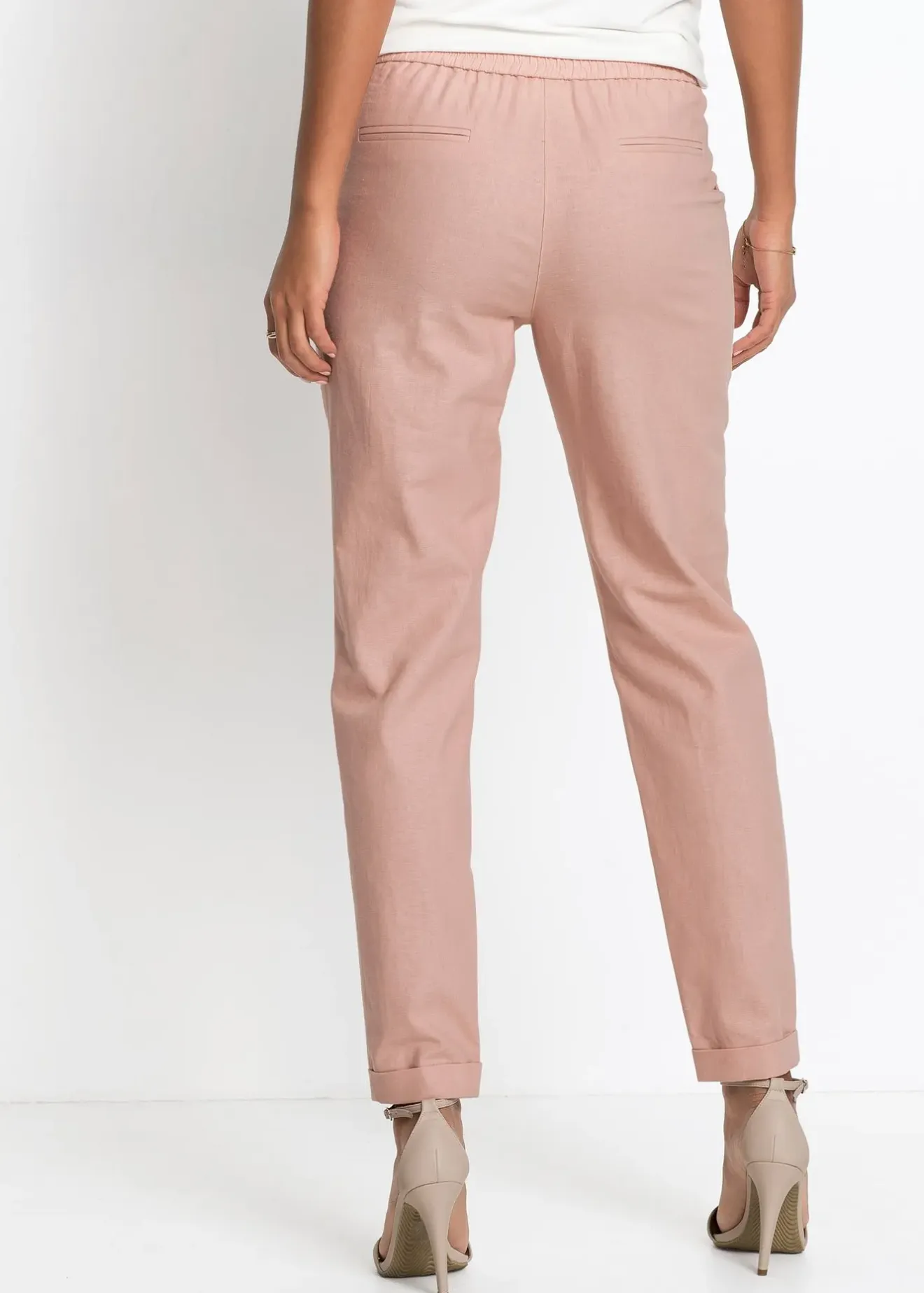 Pantalon confortable en lin avec un empiècement élastique au dos. Lien à nouer réglable sur le devant. Long. entrejambe env. 74,5 cm.