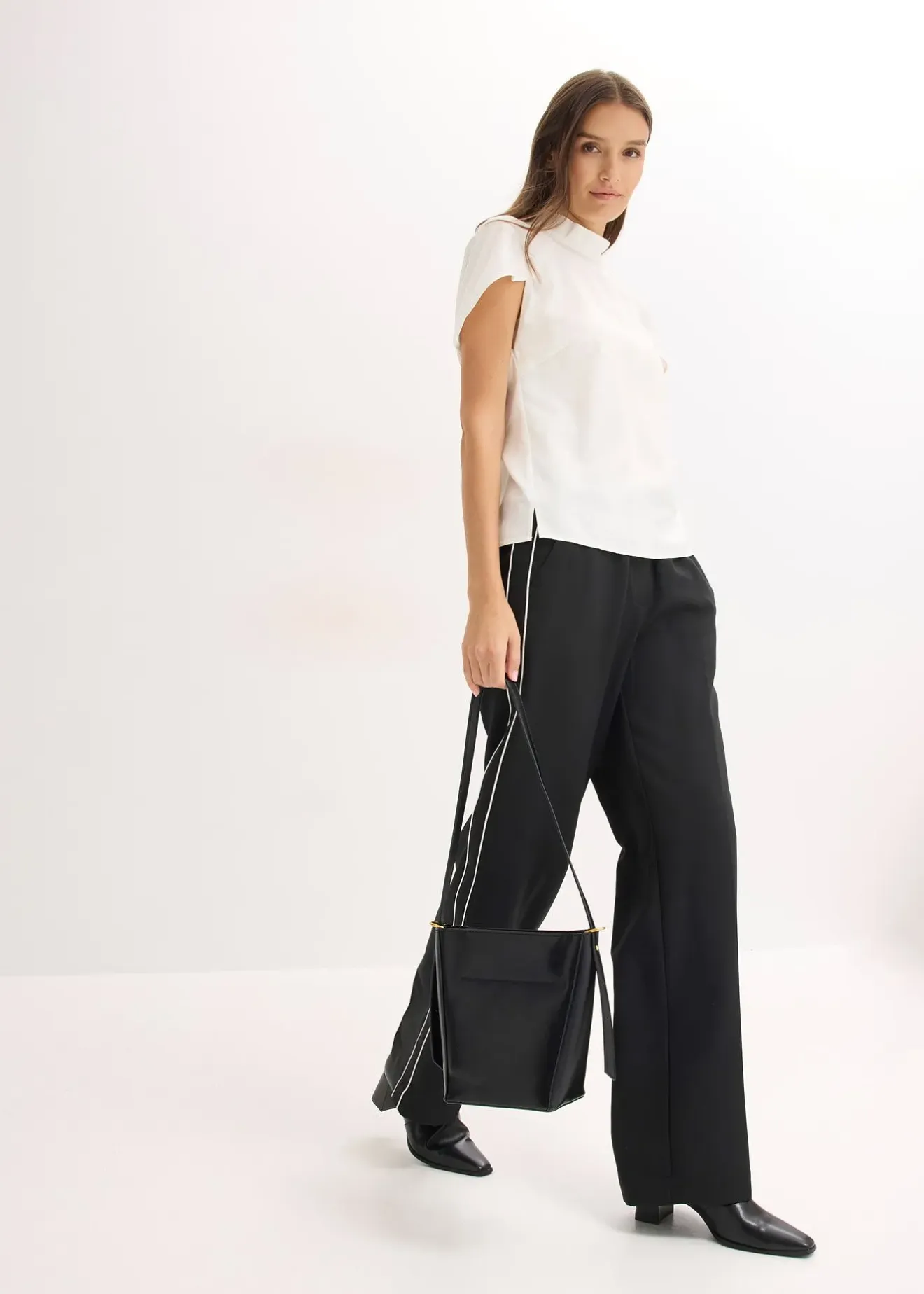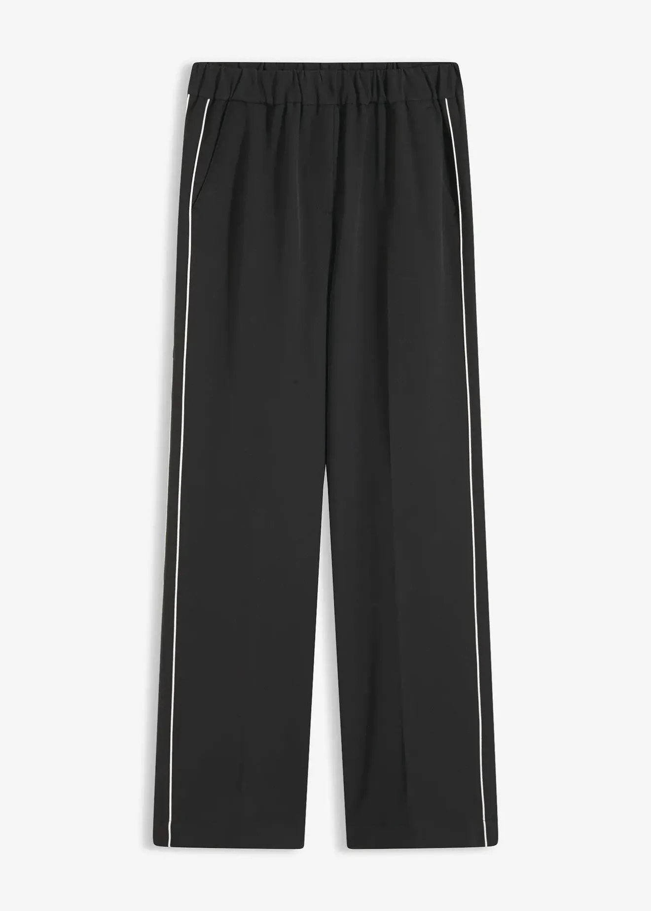 Pantalon large et décontracté à galons décoratifs et taille élastiquée