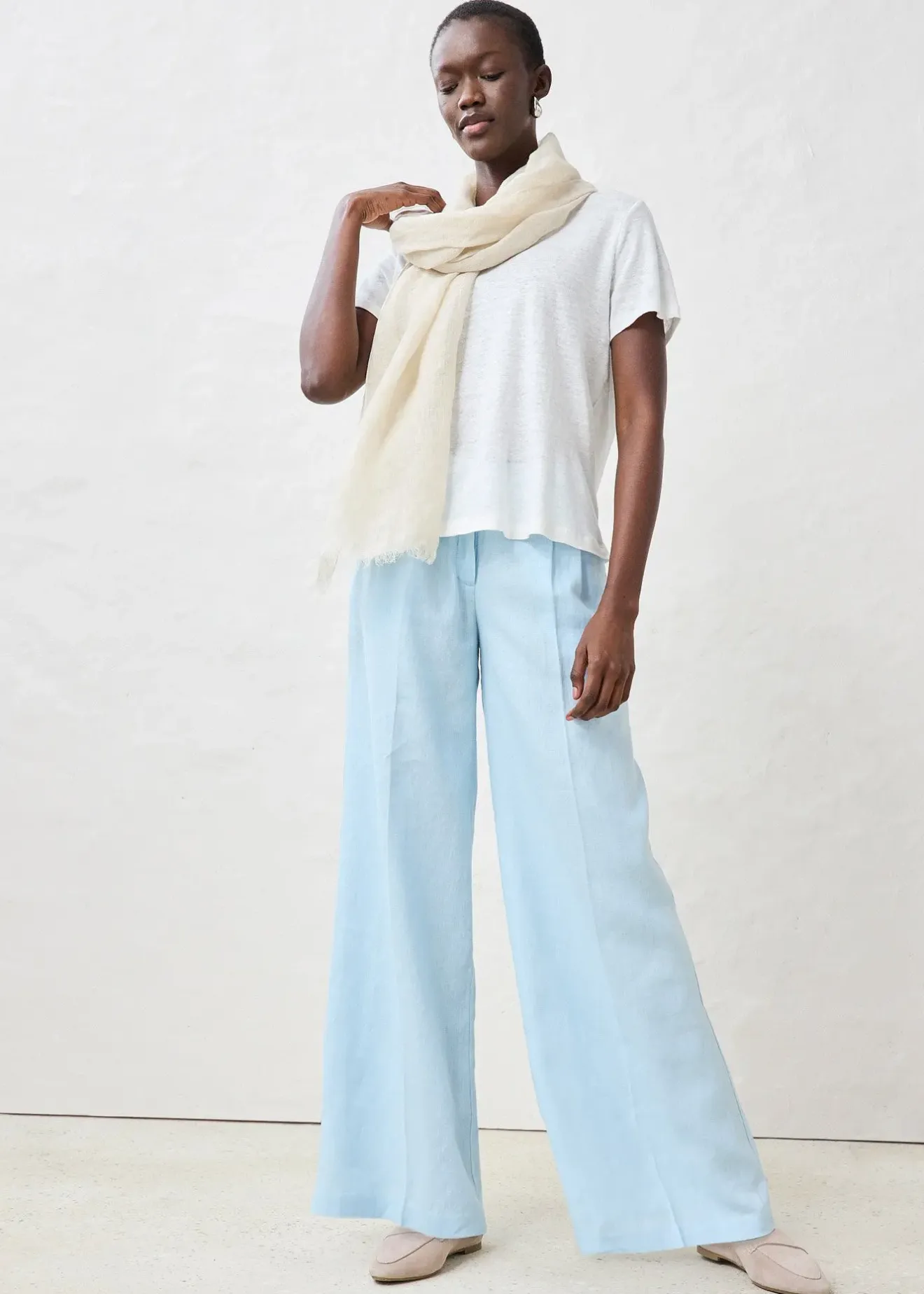 Le lin est une fibre naturelle robuste aux propriétés rafraîchissantes. Idéale pour l’été, cette matière aérienne et agréable sur la peau se distingue par sa texture et son effet froissé raffiné.