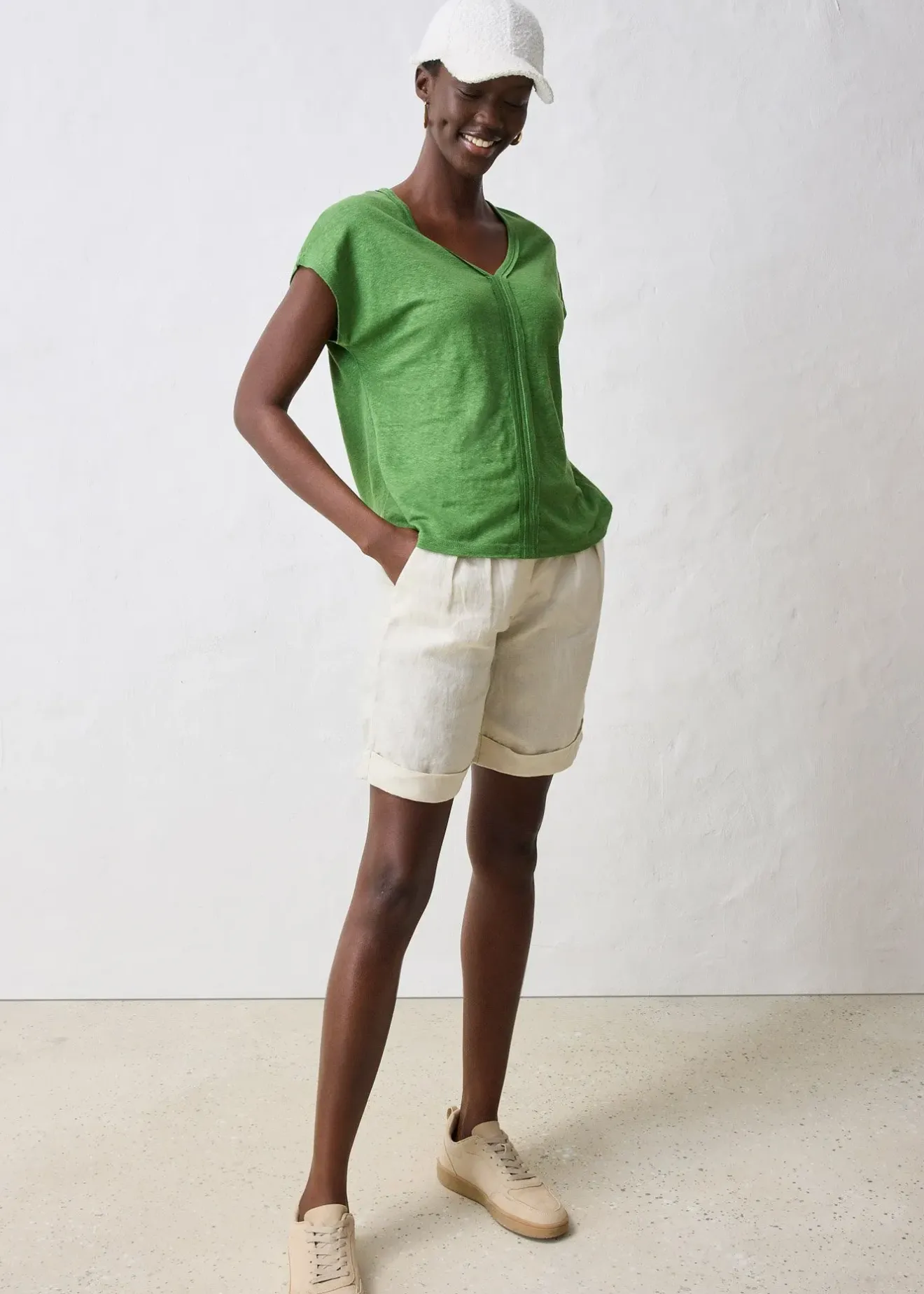 Le lin est une fibre naturelle robuste aux propriétés rafraîchissantes. Idéale pour l’été, cette matière aérienne et agréable sur la peau se distingue par sa texture et son effet froissé raffiné.