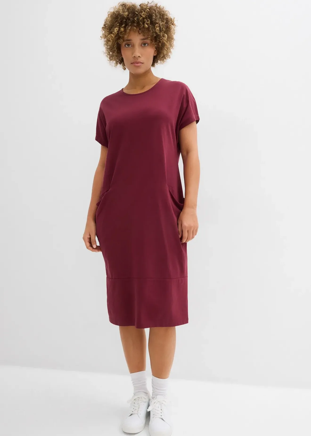 Robe longueur genou à col rond.