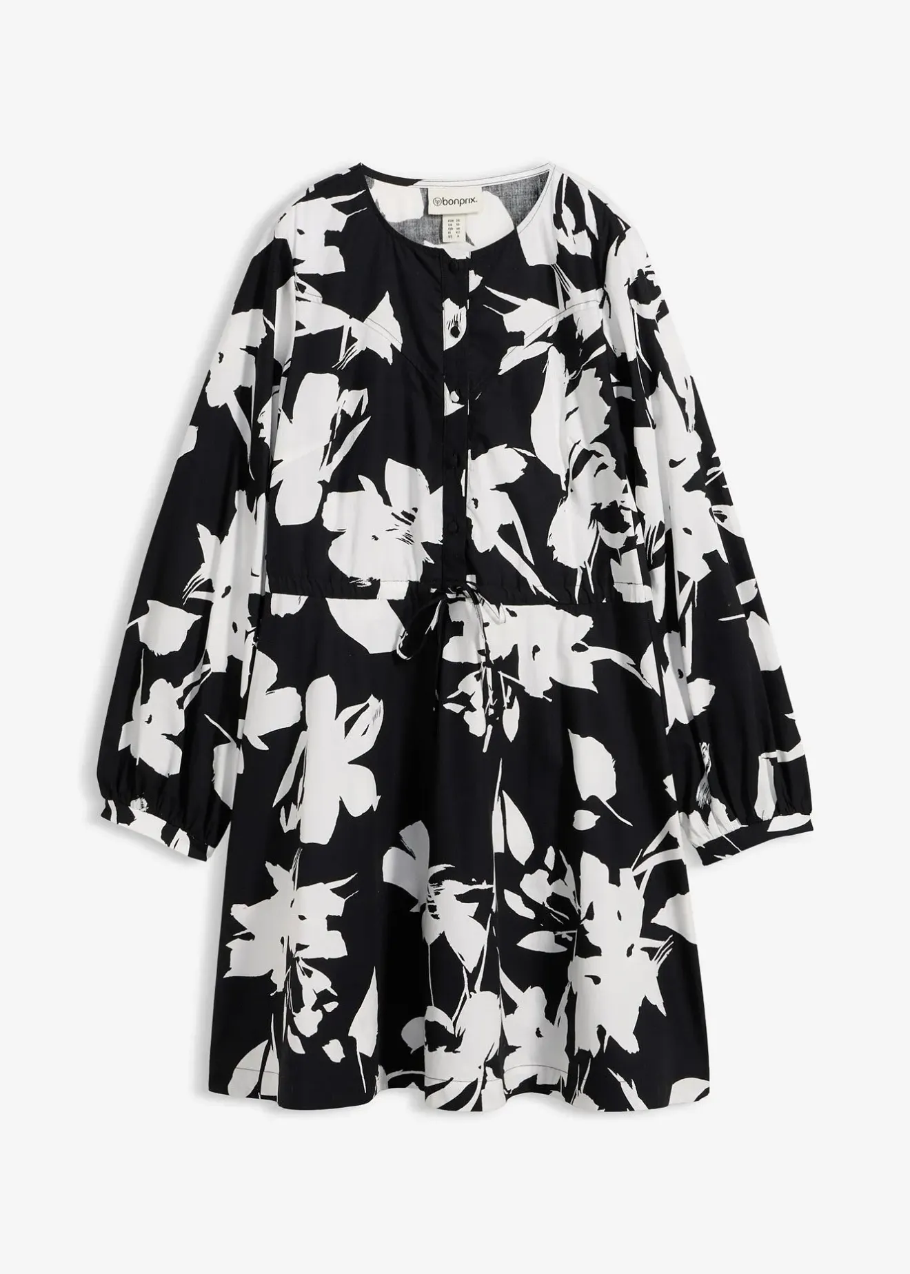 Robe-tunique 100% coton avec lien à nouer à la taille et boutons devant
