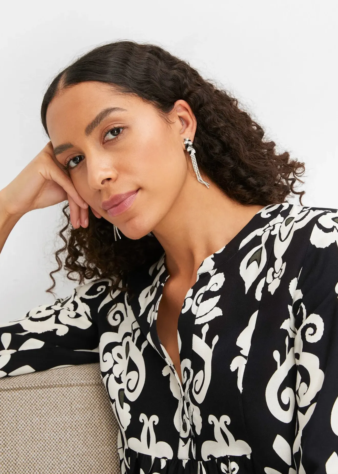 Robe-tunique imprimée en viscose fluide avec un ravissant motif