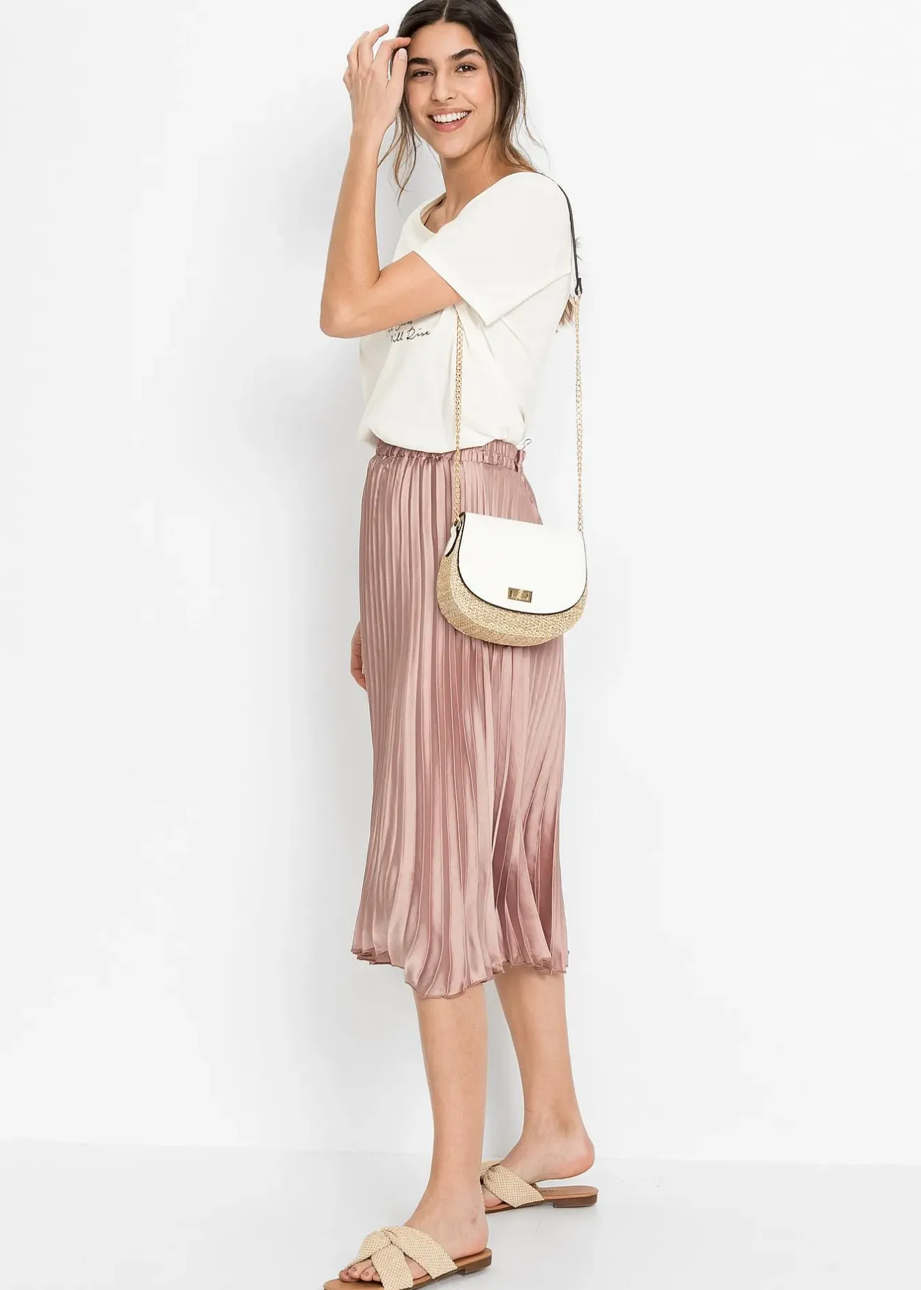 Joli sac à bandoulière avec rabat contrastant et détails de couleur dorée. Il met en valeur chaque tenue estivale.