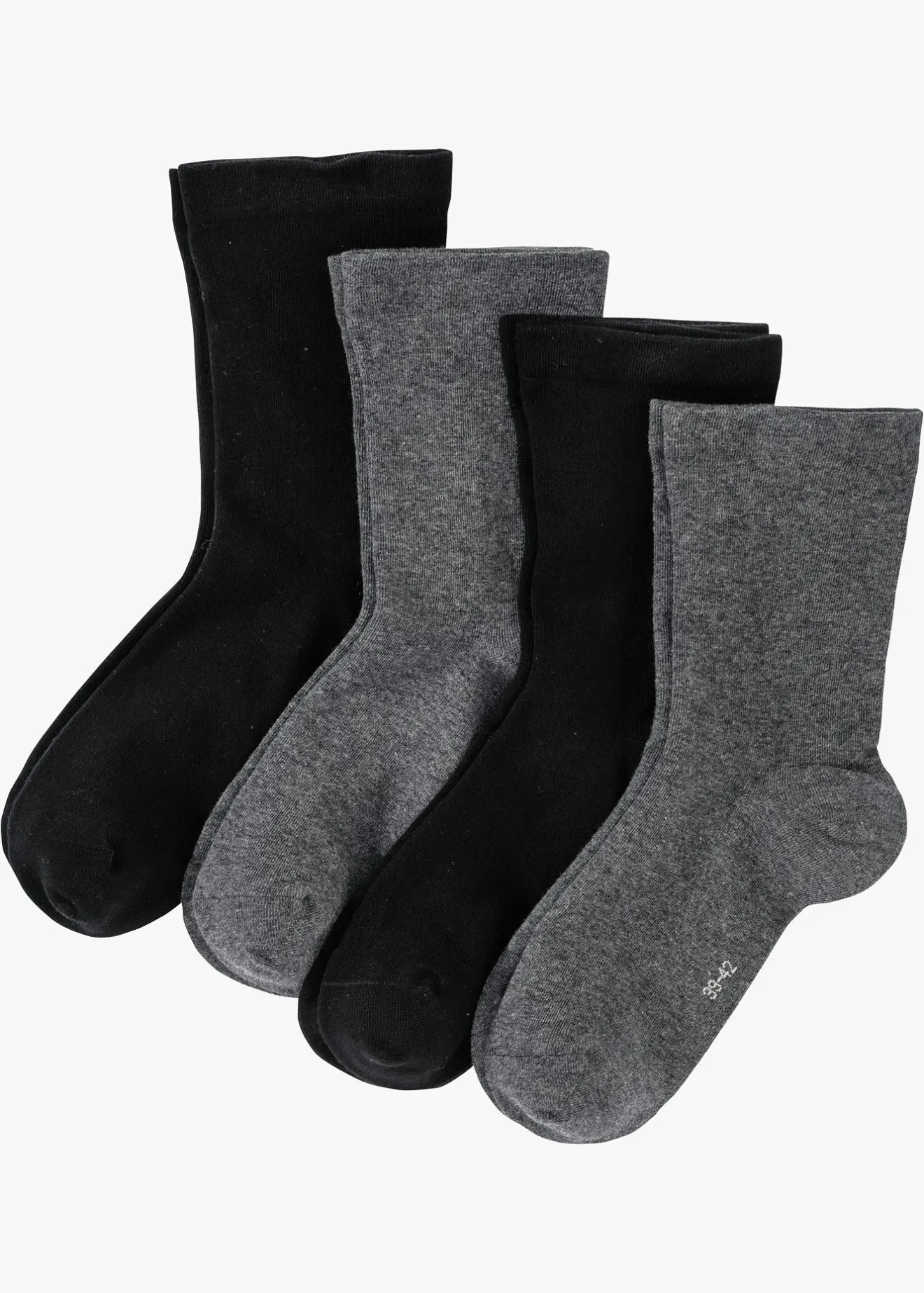 Ces chaussettes aux finitions ultra douces à bord non comprimant sont proposées en lot pratique de 4 paires. Pointe remaillée, sans couture. Maille extra fine avec pointe et talon renforcés. Convient aussi aux personnes diabétiques.