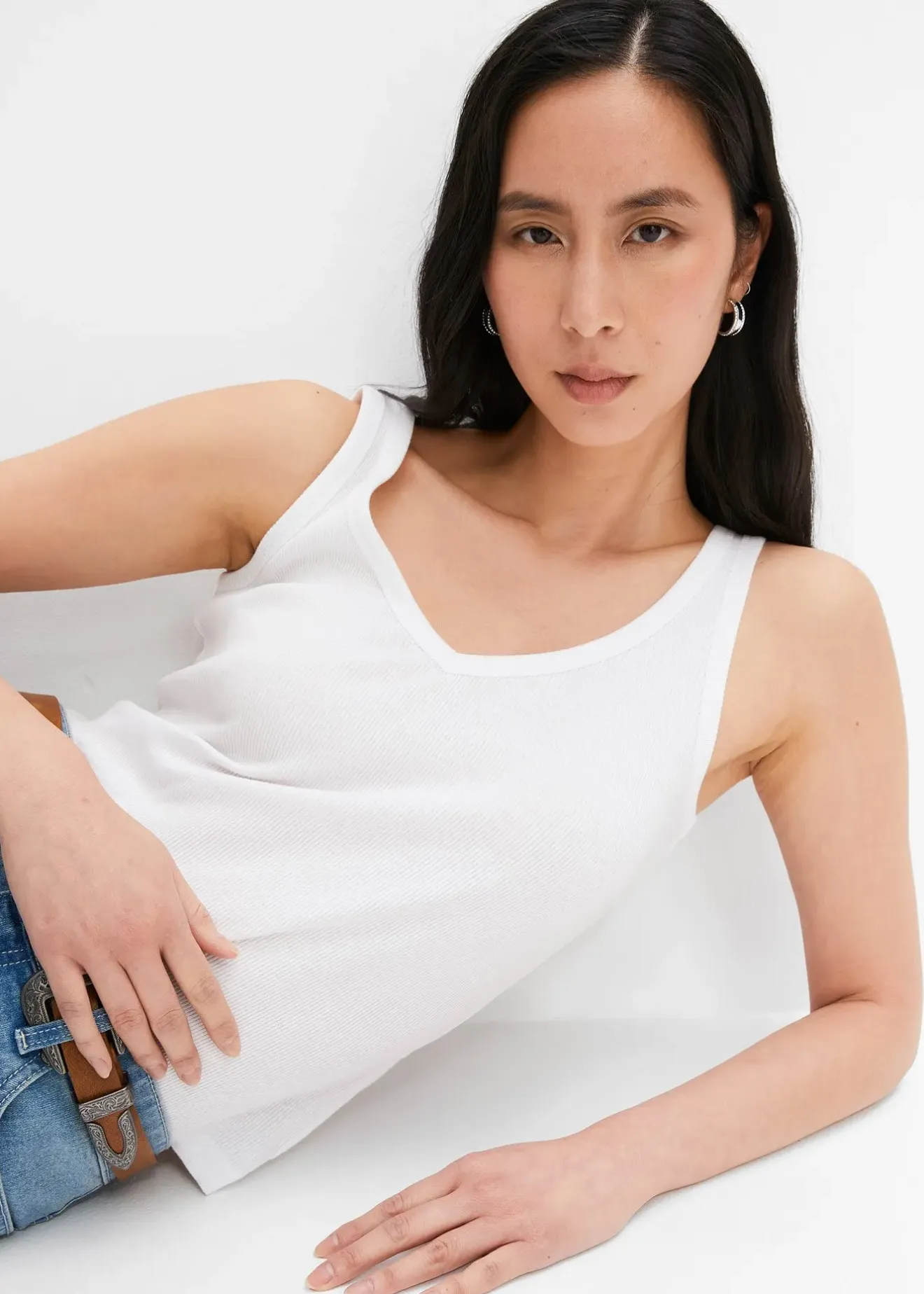 Tops côtelés tendance à décolleté plongeant, 100% coton
