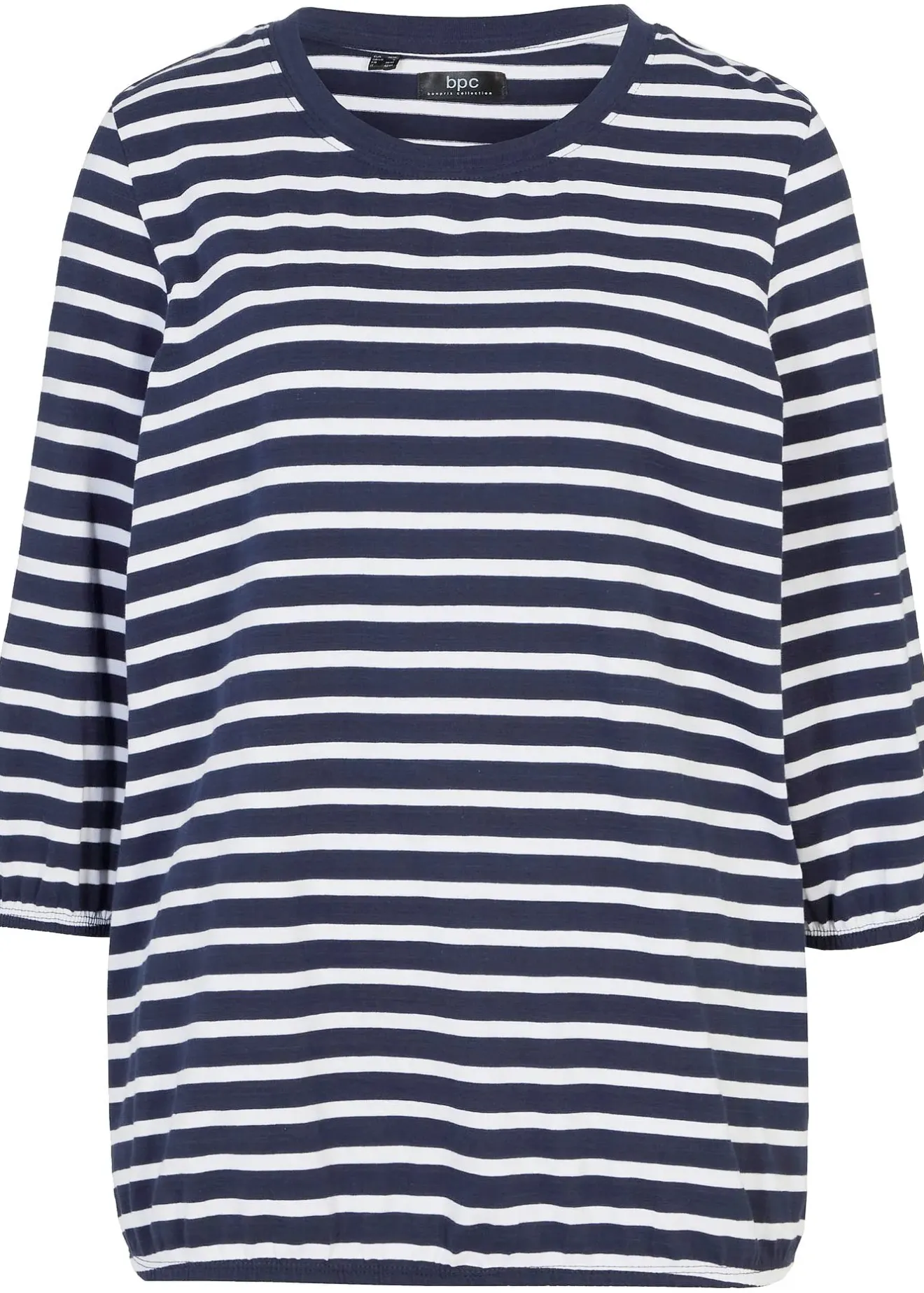 T-shirt manches 3/4 rayé en coton avec taille élastiquée