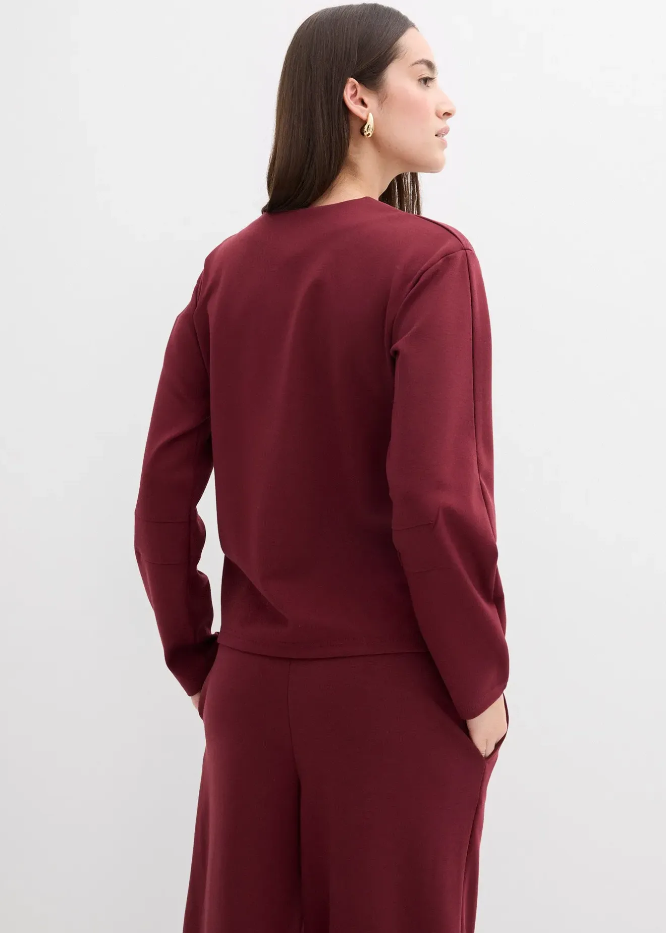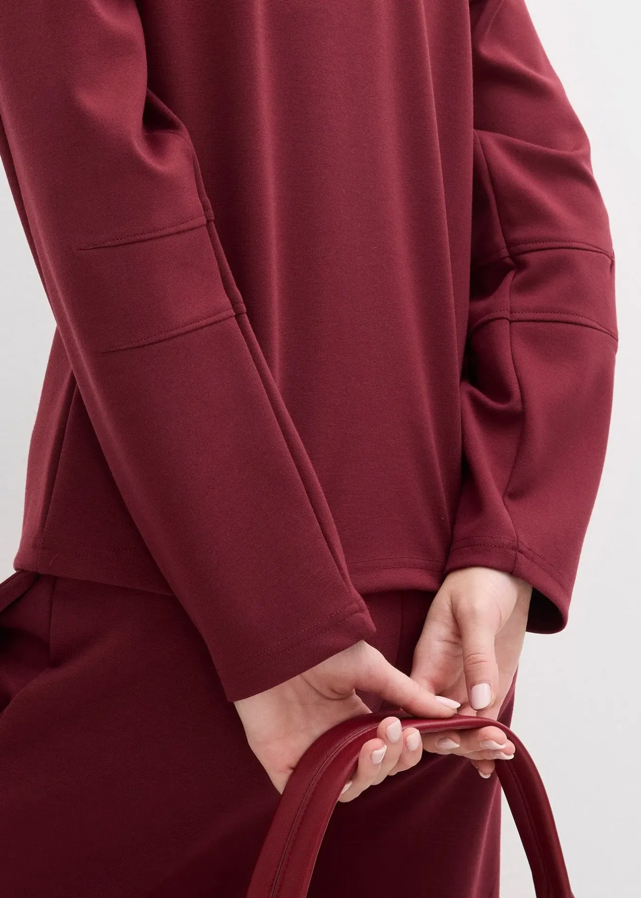 T-shirt manches longues en Punto di Roma à col rond et pinces devant et sur les manches