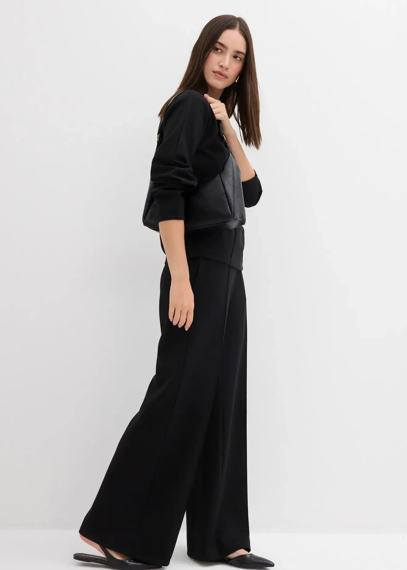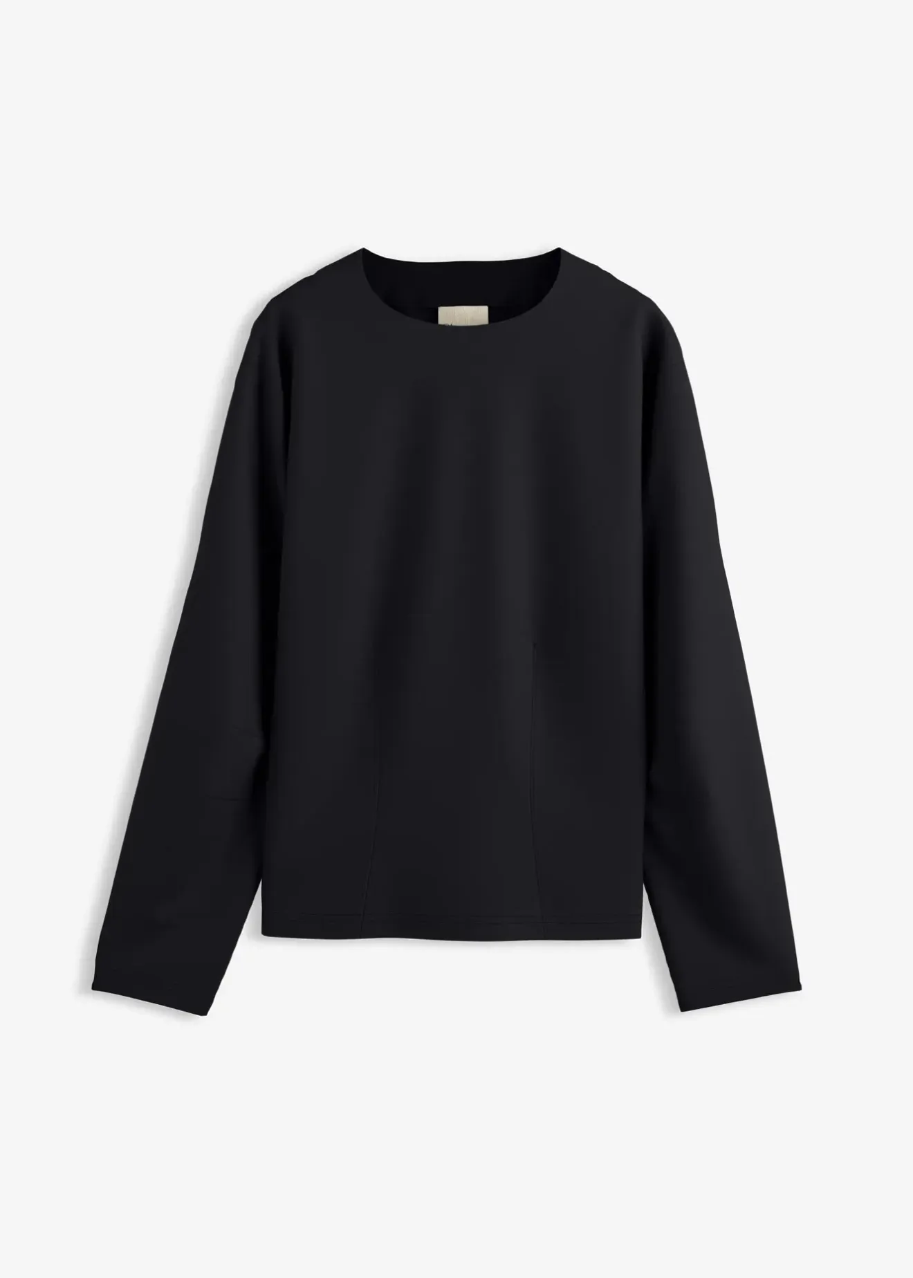 T-shirt manches longues en Punto di Roma à col rond et pinces devant et sur les manches