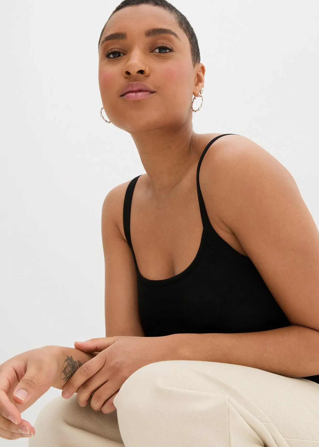 Lot de 2 tops longs bretelles spaghetti en coton