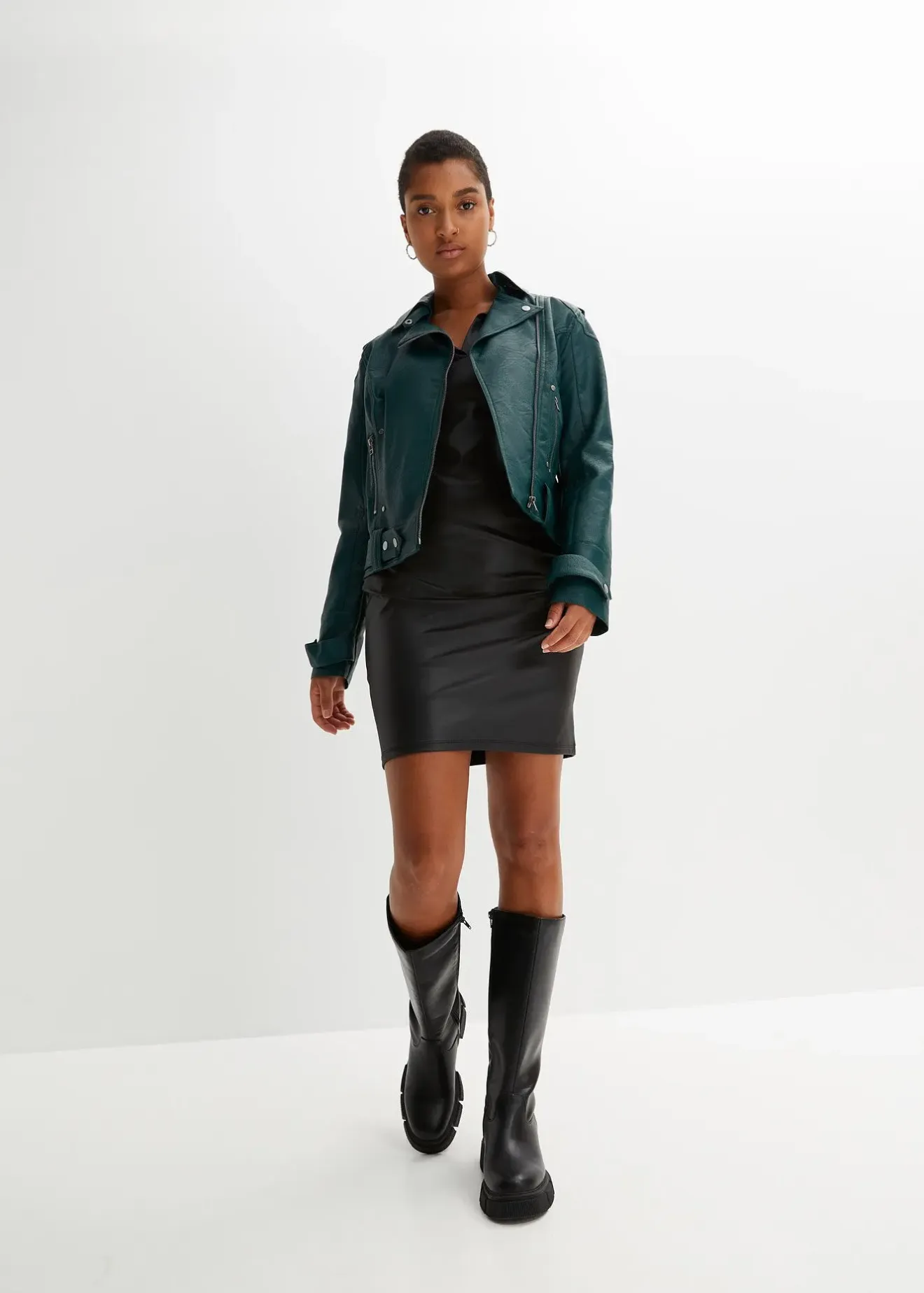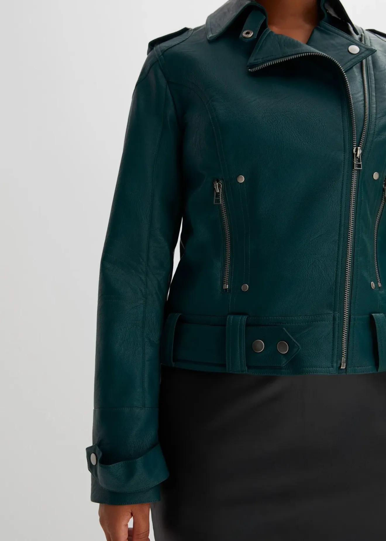 Veste biker stylée pour un look rock. Pattes, rivets et boutons-pression tendance. Fermeture zippée en biais et poches à l’avant. Doublure intérieure à motif léopard.
