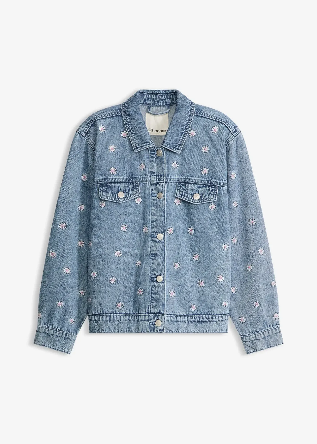 Veste en jean avec fleurs brodées, 100% coton