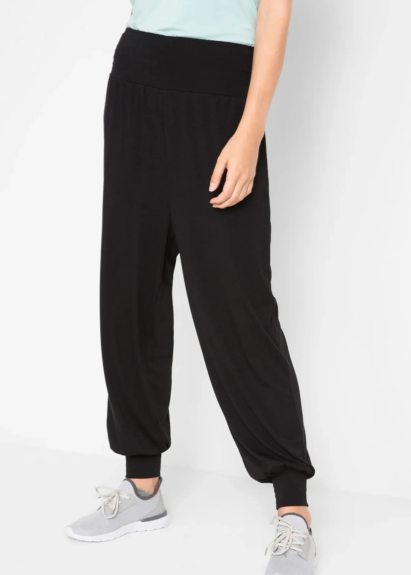 Idéal pour les activités sportives d’intensité légère et les cours de gym douce, matière douce et fluide, large empiècement à la taille, jambes amples avec empiècement à la base, long. entrejambe env. 70 cm, lavage machine.