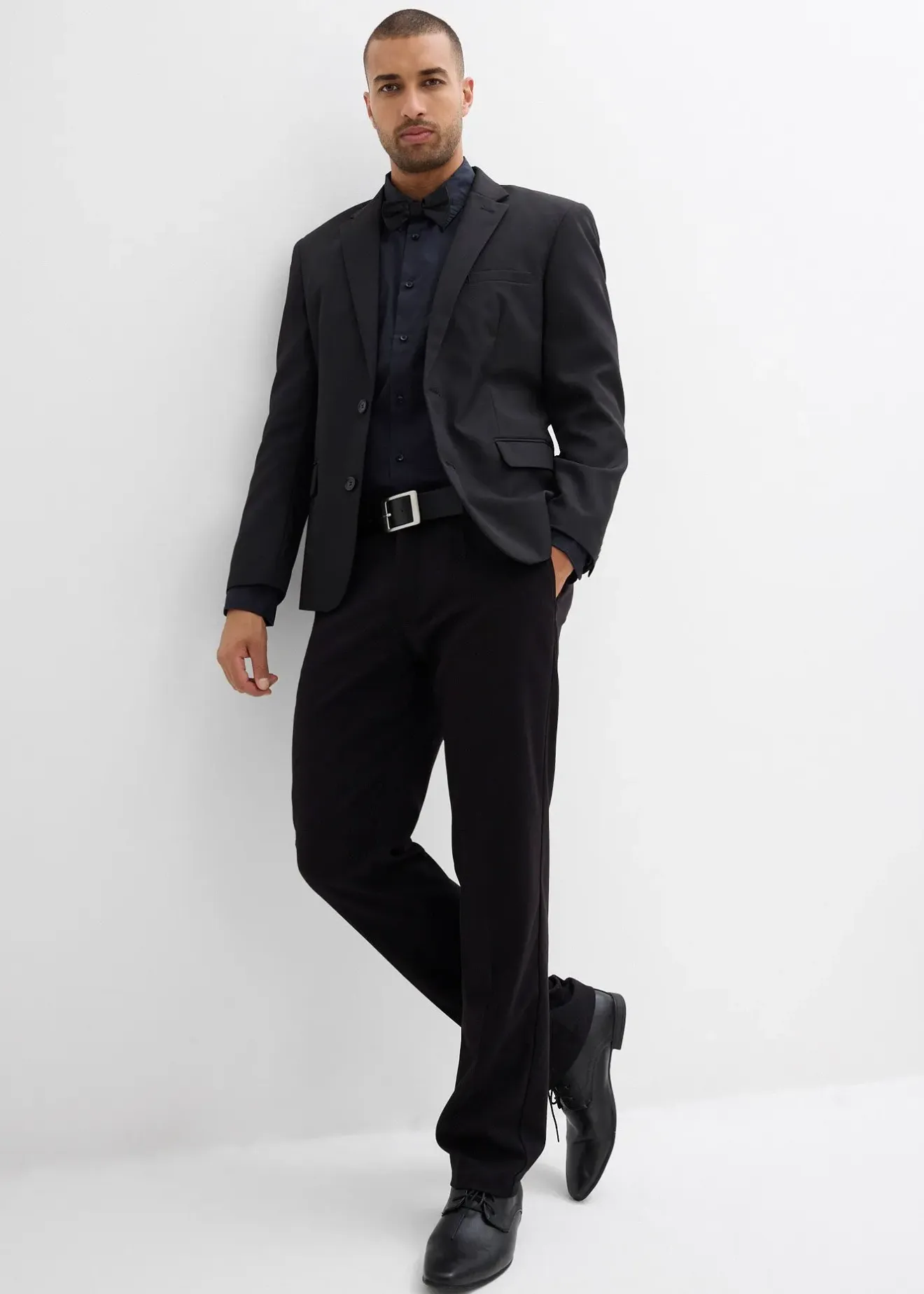 Chemise élégante à pinces/chemise classique regular avec boutons noirs et nœud papillon assorti