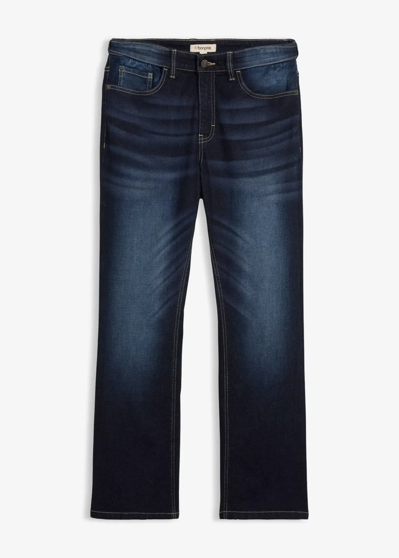 Jean bootcut classique et intemporel à taille élastiquée et effets used discrets