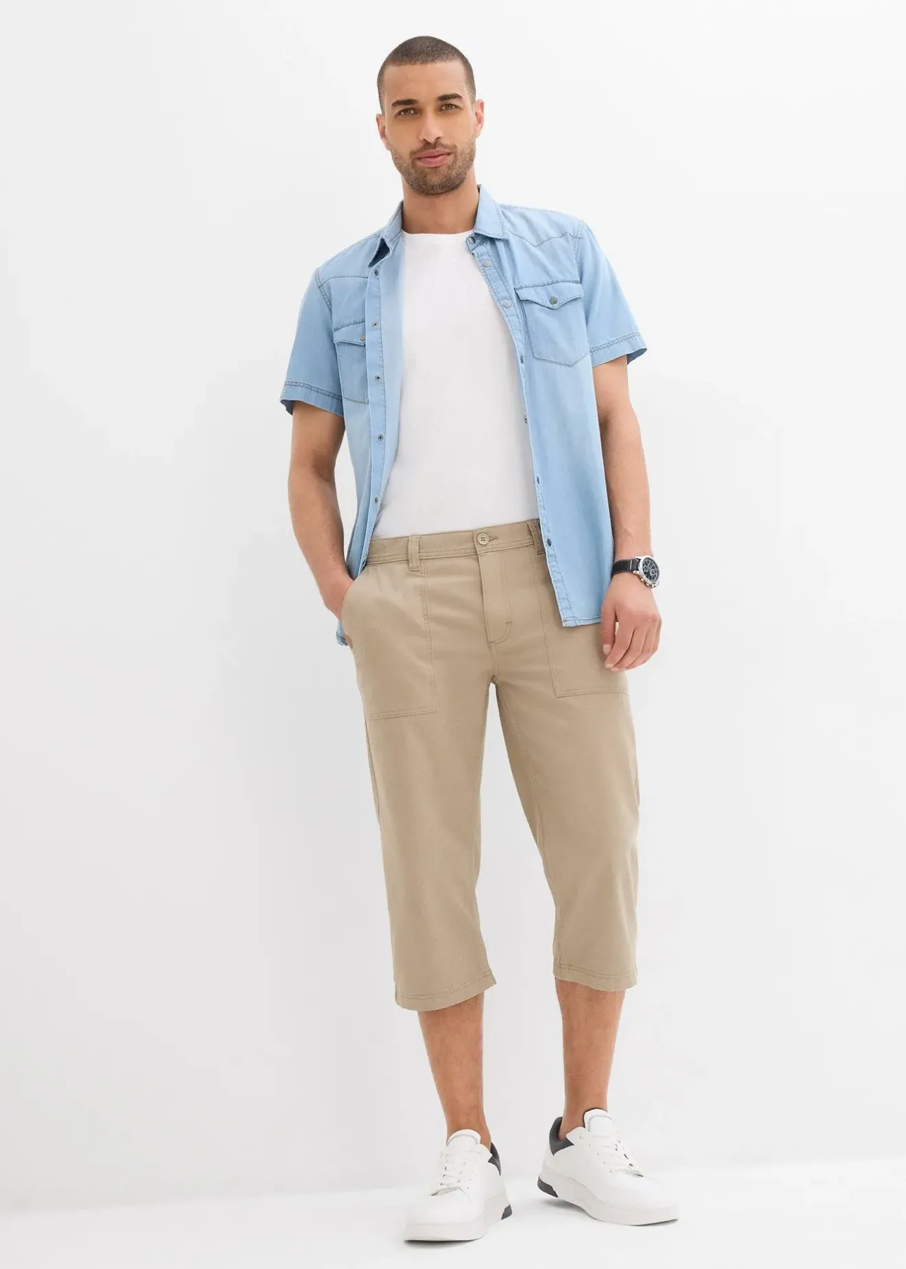 Bermuda long tendance avec poches plaquées et détails mode, lavage machine