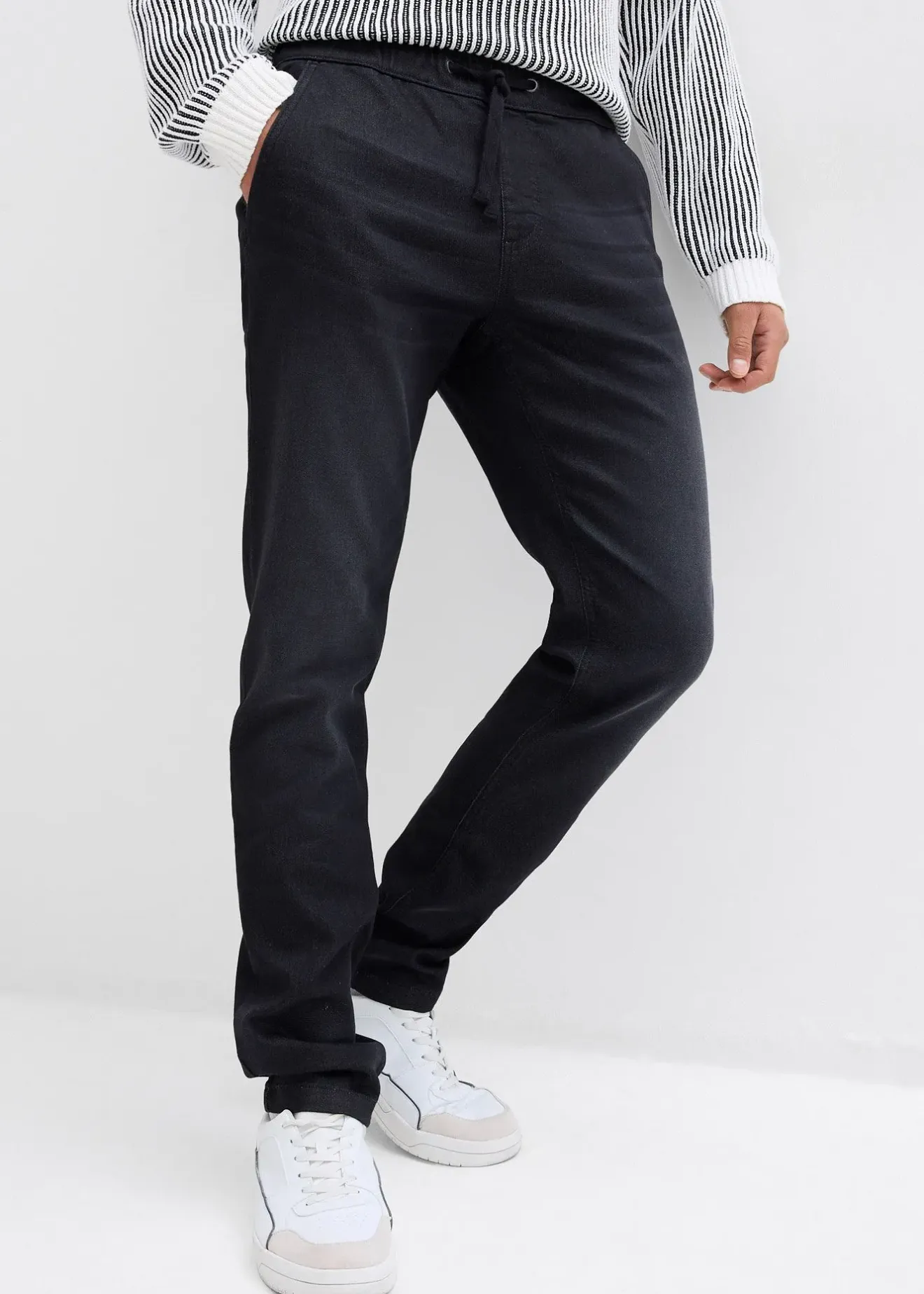 Pantalon de jogging homme à effet jean de John Baner. Coupe regular et taille élastiquée avec cordon pour plus de confort. Deux poches arrière et deux poches sur les côtés. Modèle idéal avec un sweat et des baskets pour un look sportif et décontracté.
