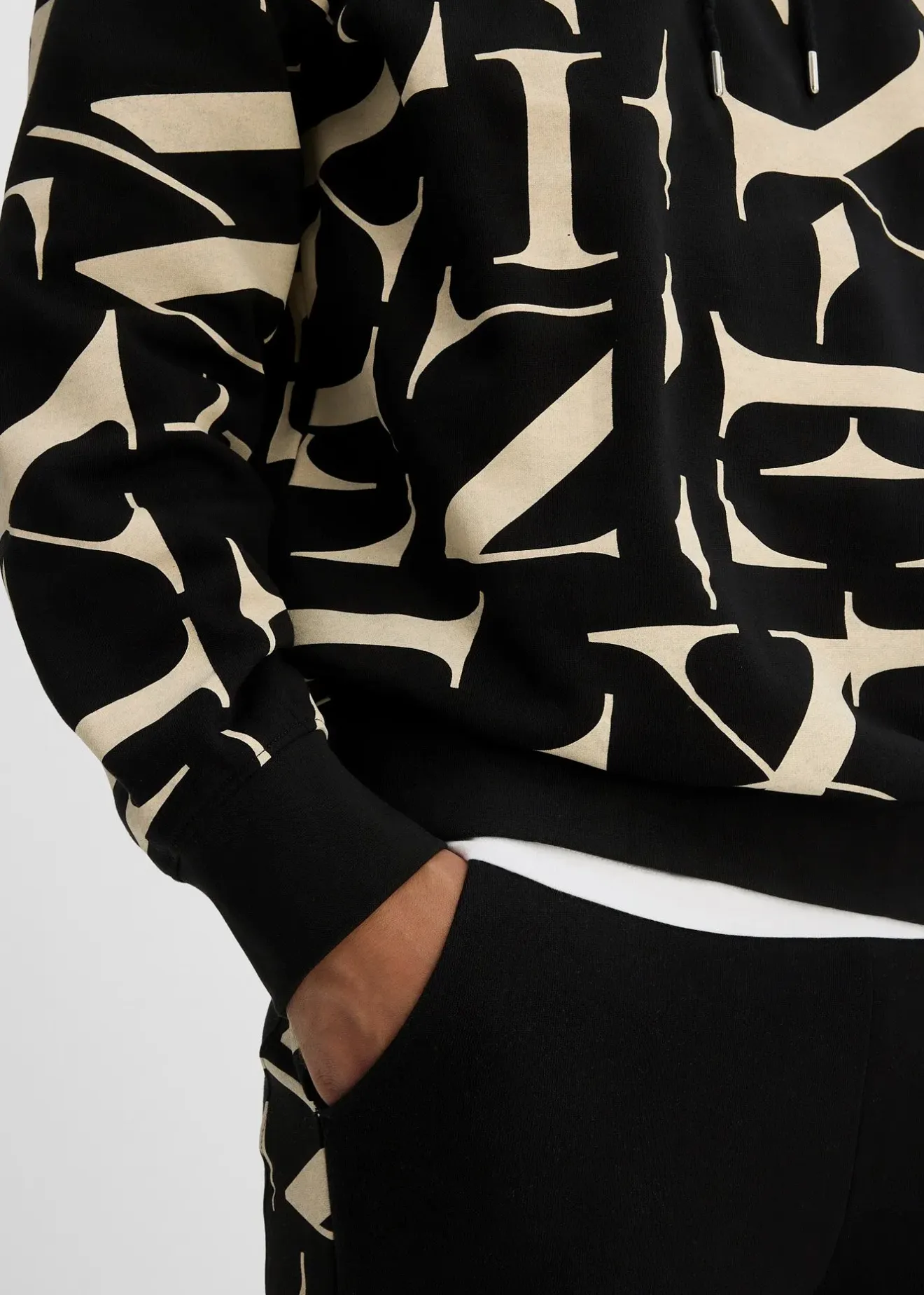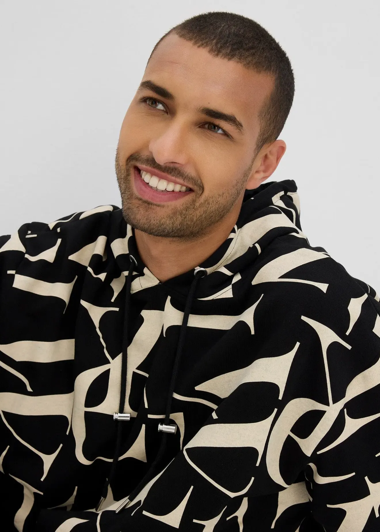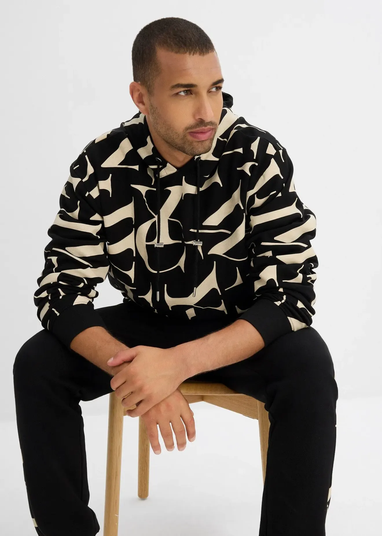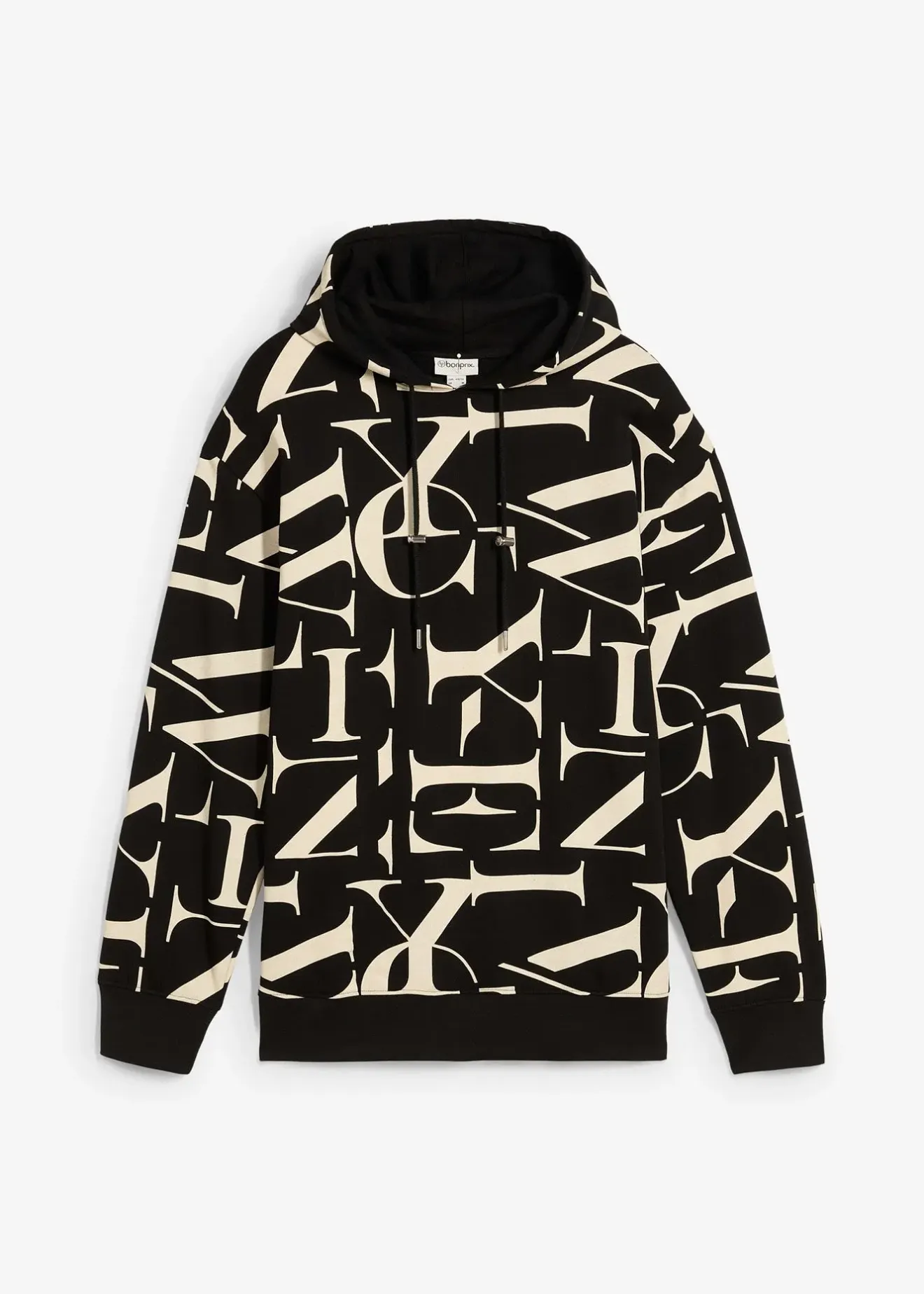 Sweat à capuche moderne 100% coton, coupe un peu large, intérieur gratté doux