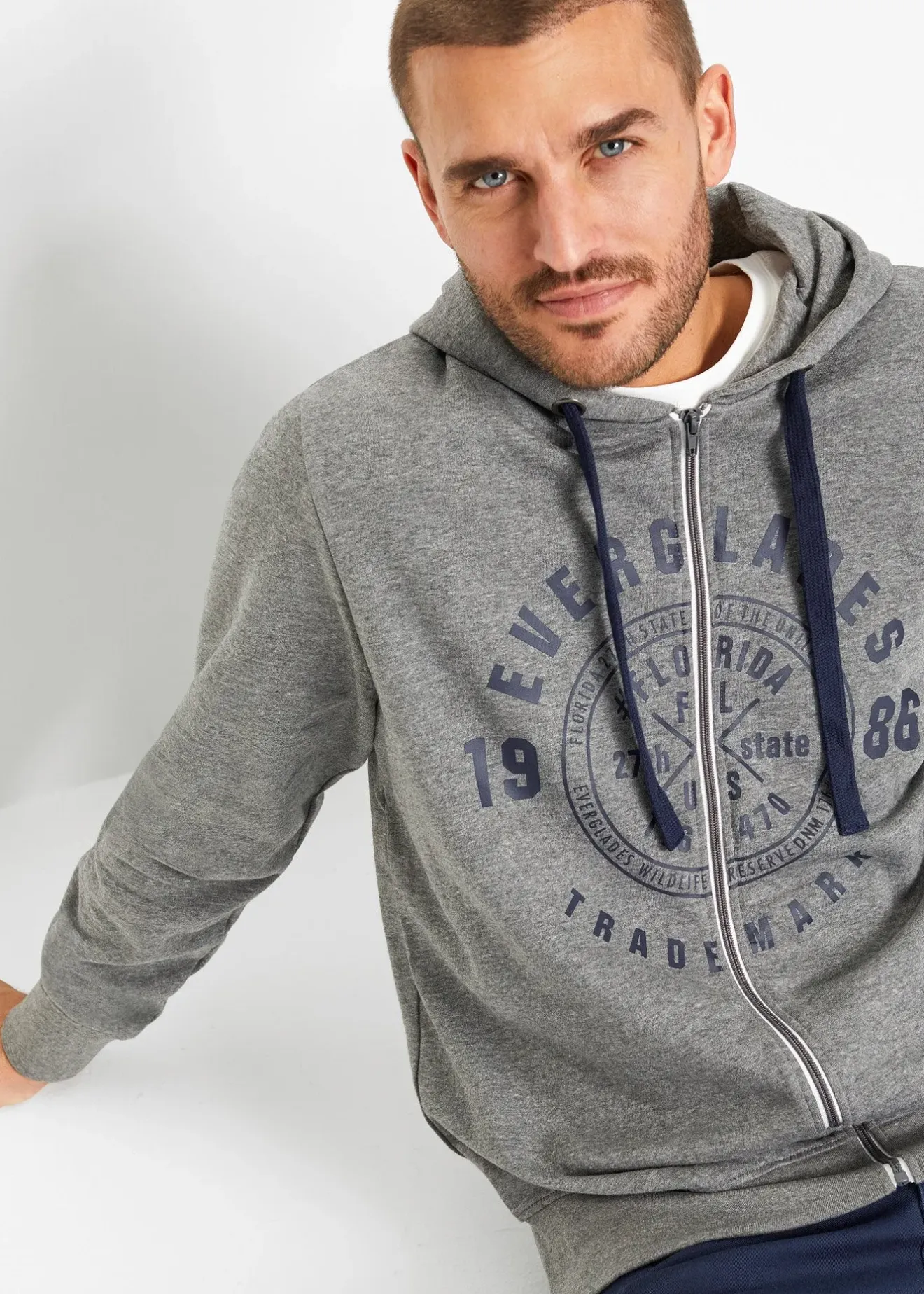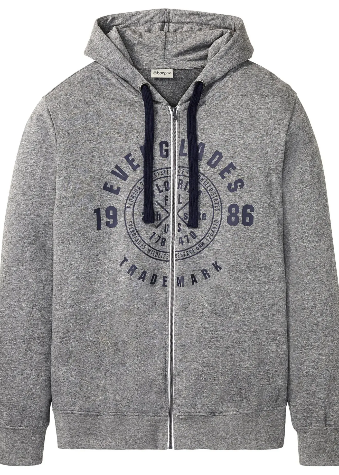 Sweat zippé tendance coupe confort avec un grand imprimé sur la poitrine, lavage machine