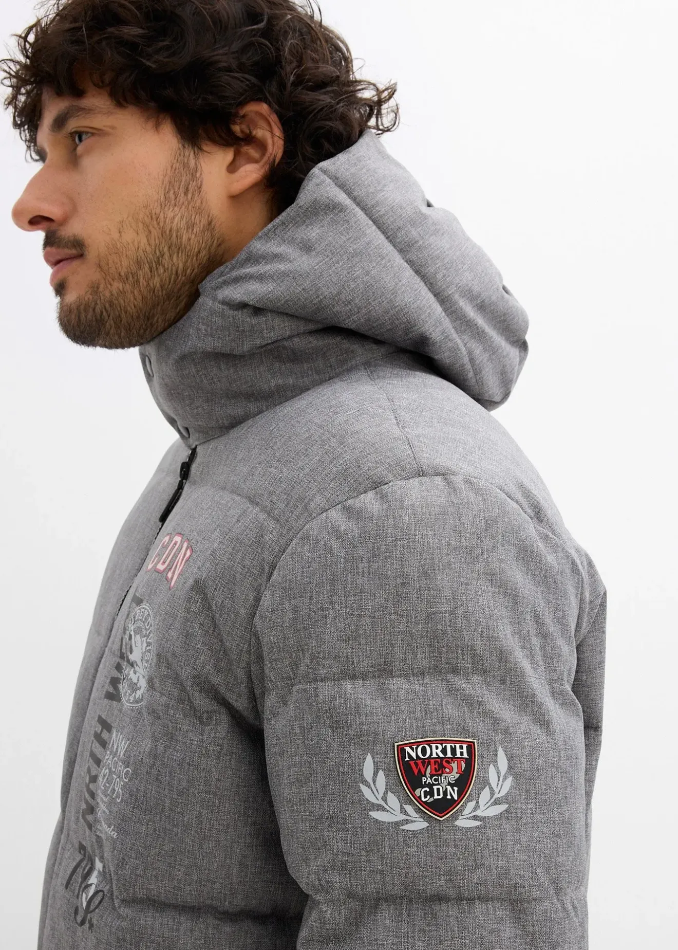 Doudoune chaude à capuche et imprimé sportif