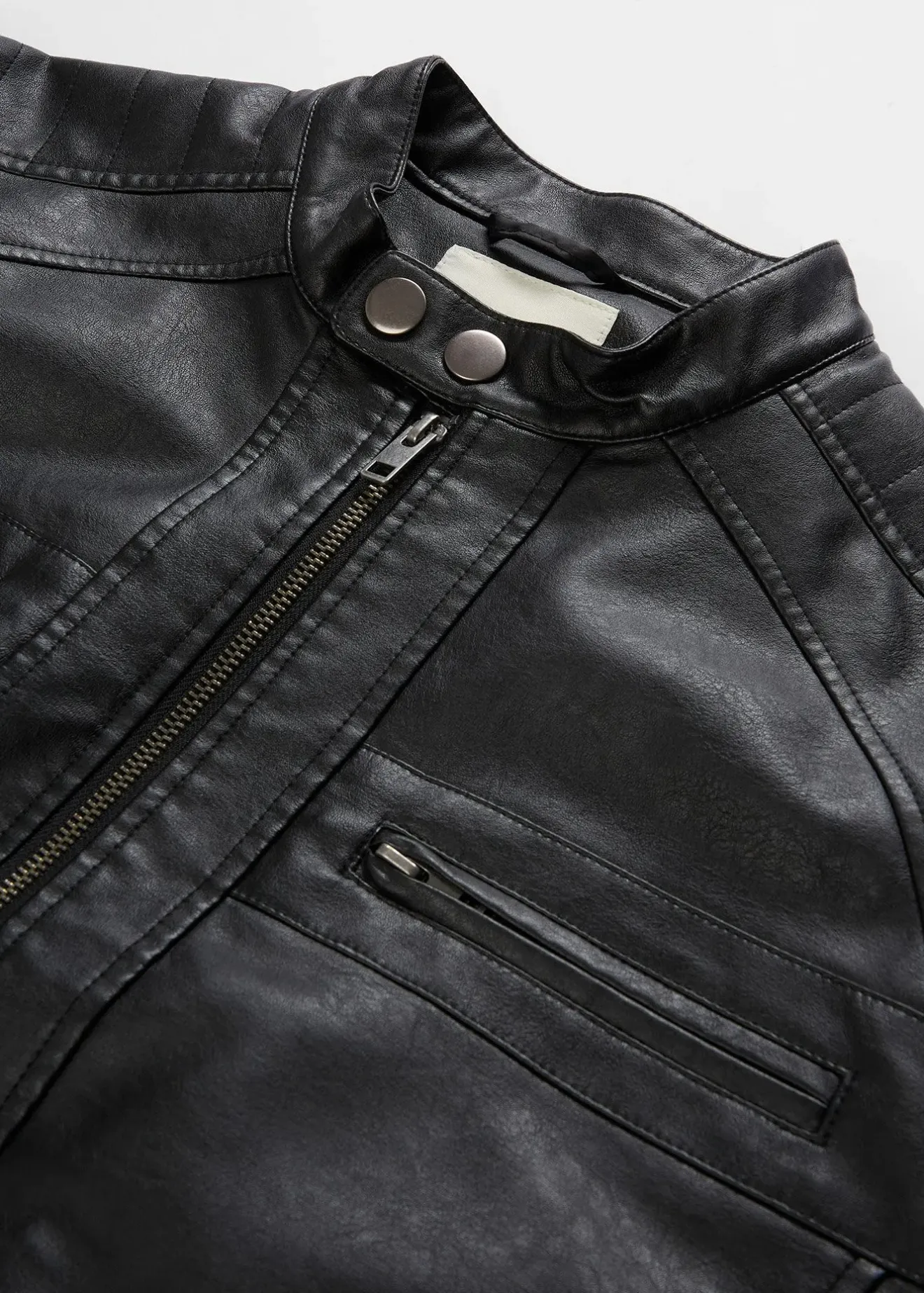 Veste biker cool avec col montant, poches zippées, empiècements piqués et look used tendance