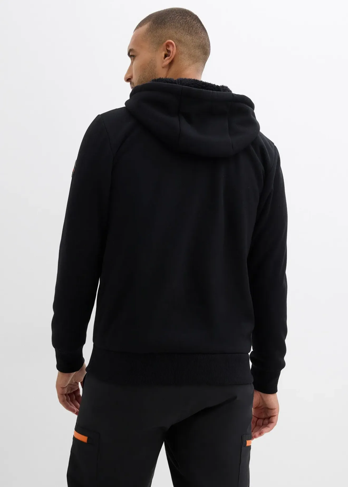 Sweat zippé moderne à capuche avec finitions côtelées et badge sur les manches