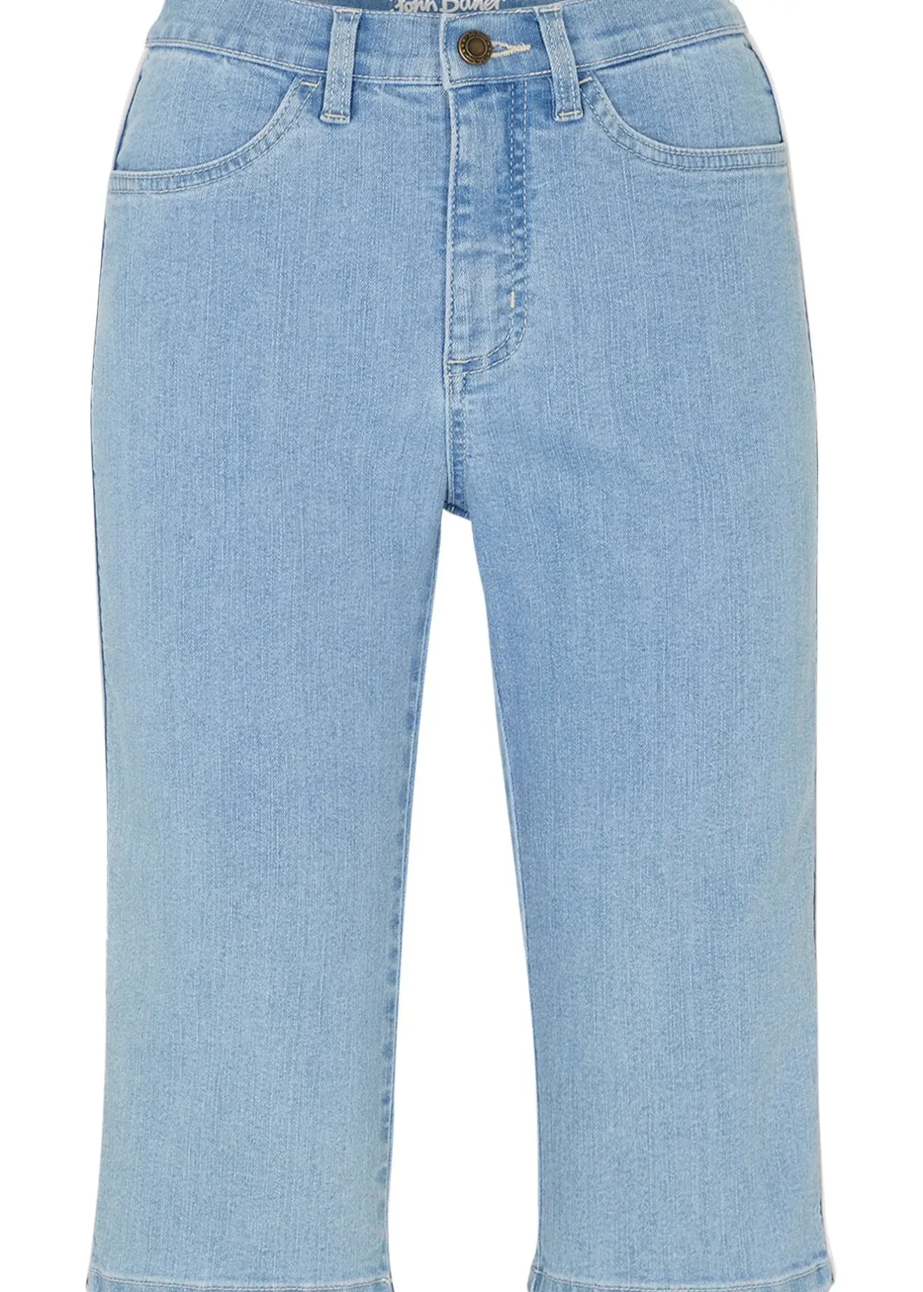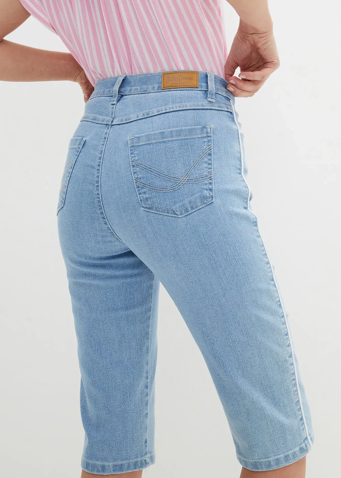 Bermuda en jean étroit et extensible avec passepoil contrastant sur les côtés