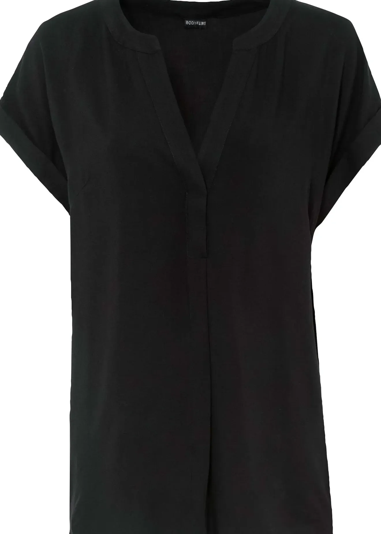 Blouse moderne de BODYFLIRT. Blouse dotée d’un col Henley. Long. env. 64 cm.