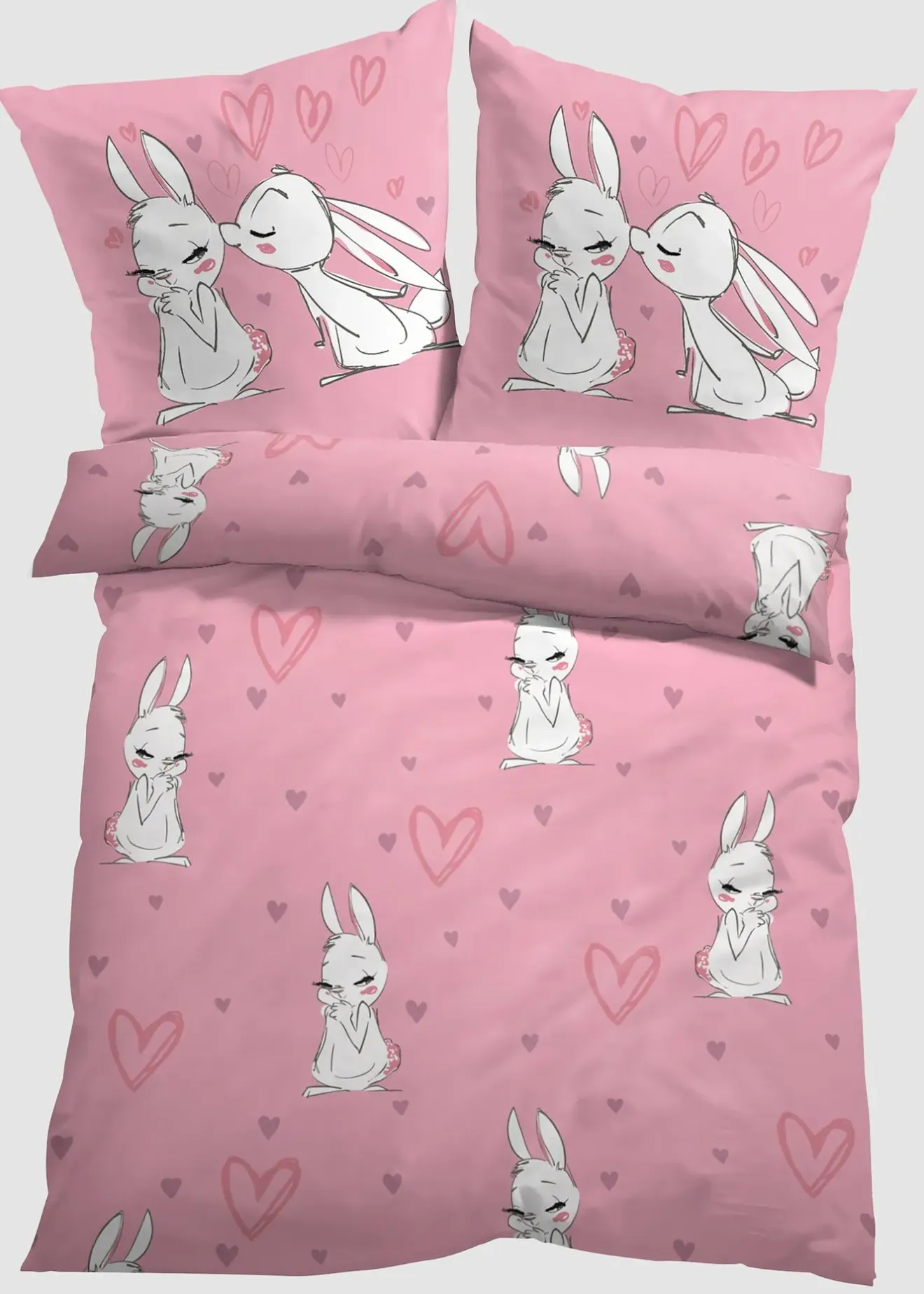Parure de lit avec lapins et cœurs