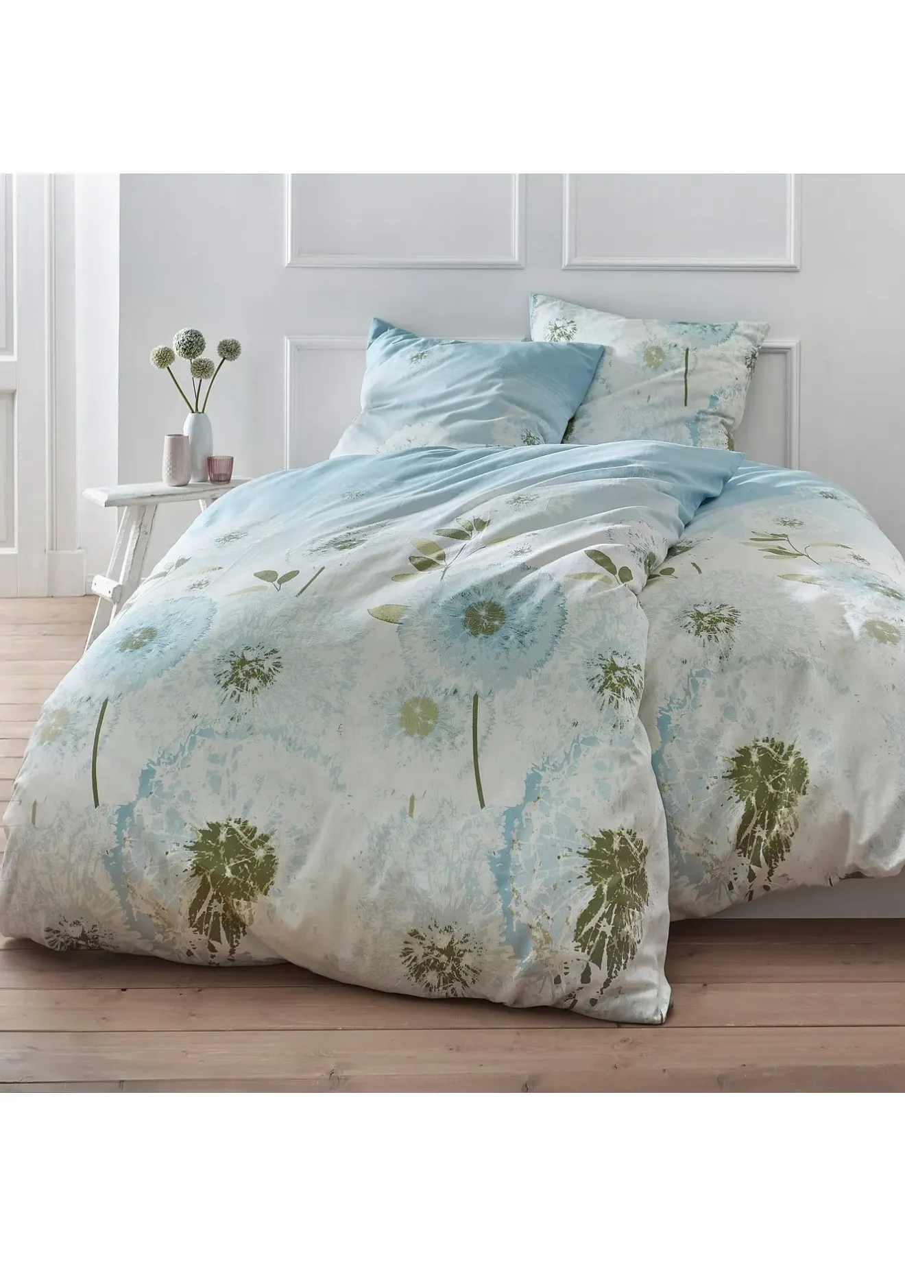 Linge de lit à motif fleur de pissenlit.