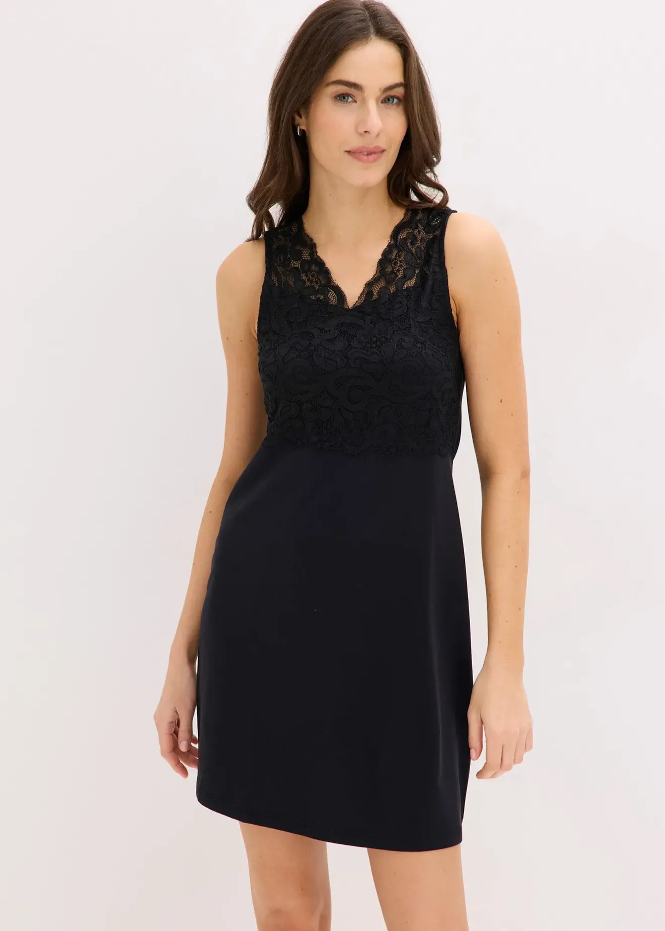 Chemise de nuit féminine avec encolure en V et empiècement dentelle