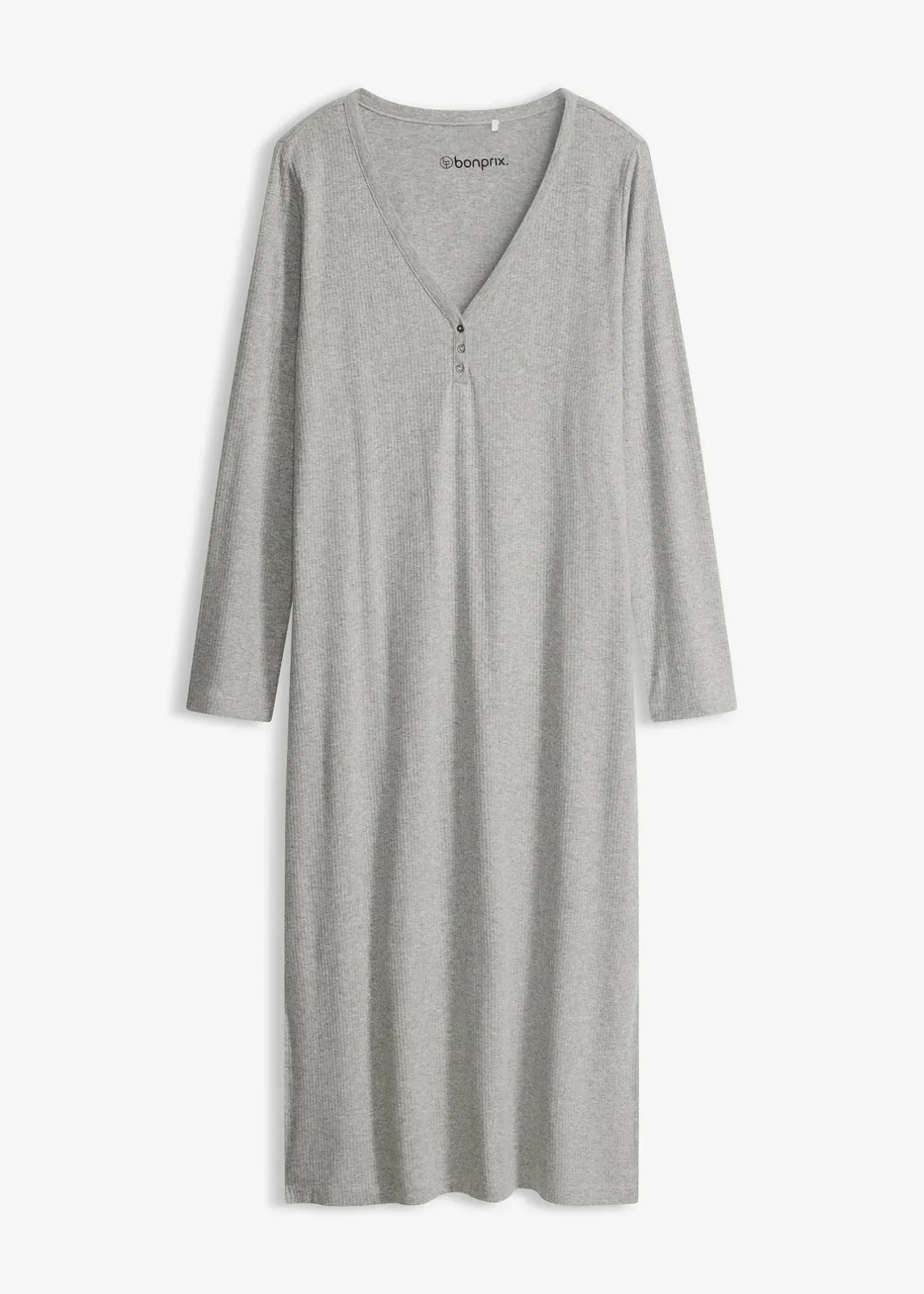 Chemise de nuit longue à manches longues, col en V et grande fente sur les côtés