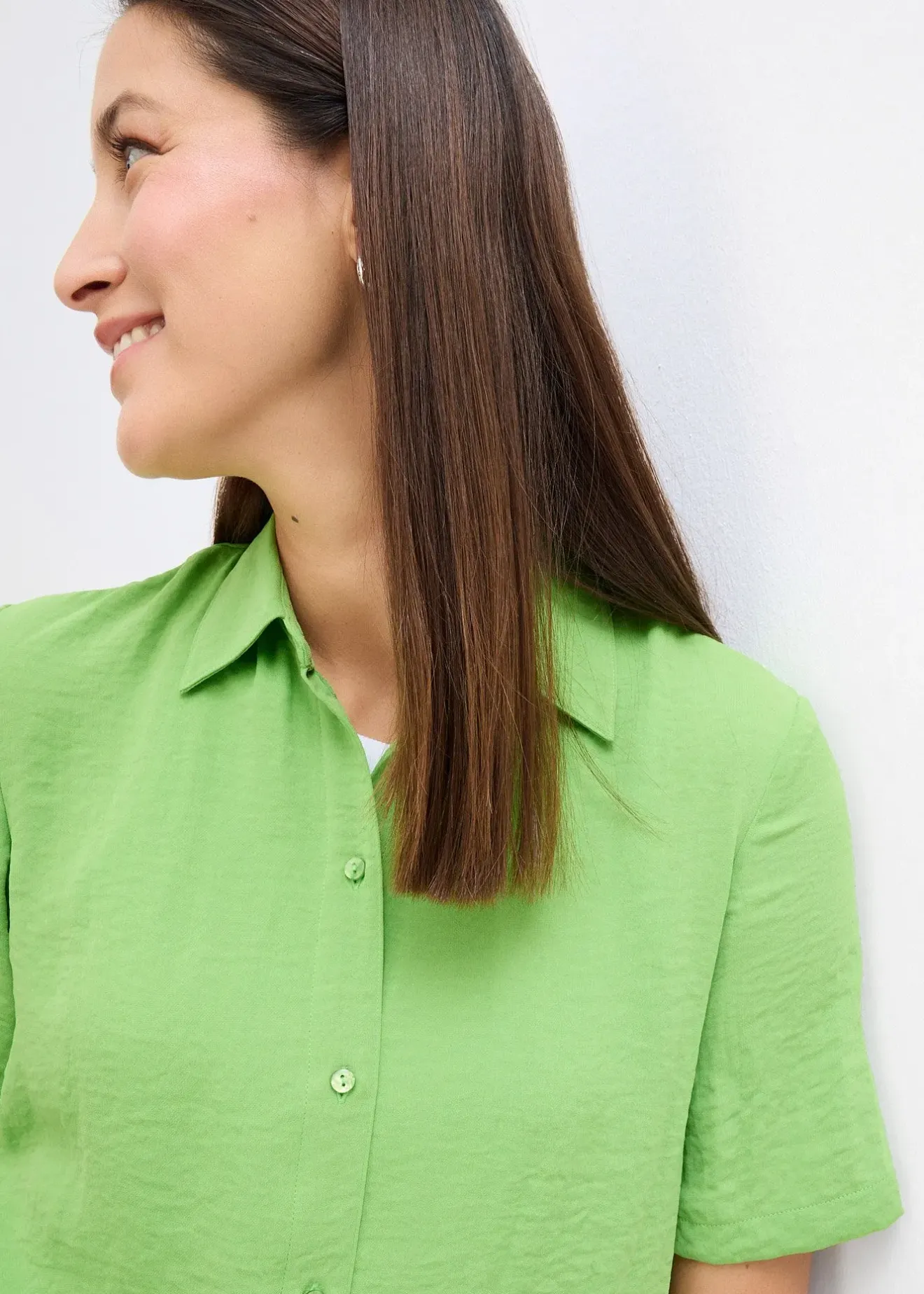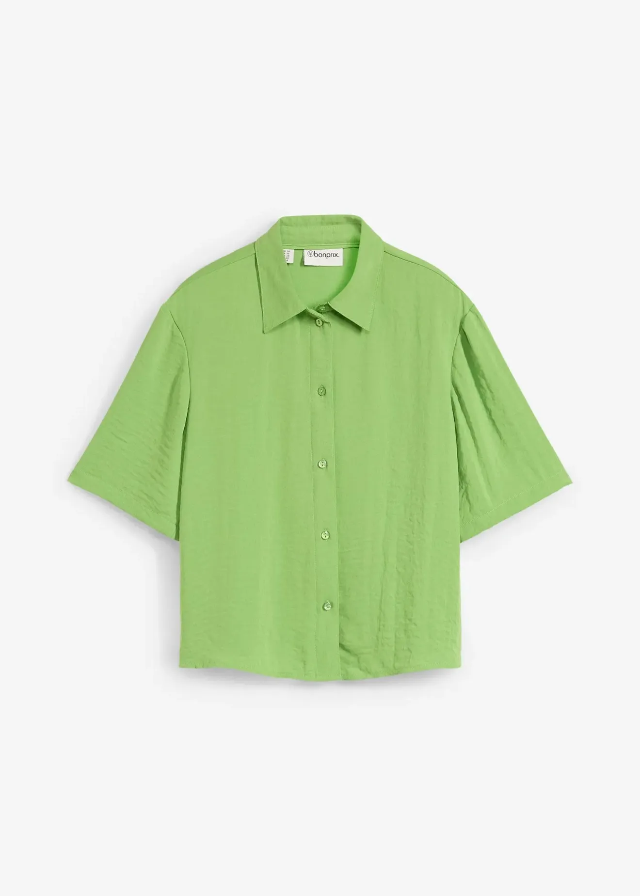 Chemisier court et boxy, demi-manches, col à revers et patte de boutonnage