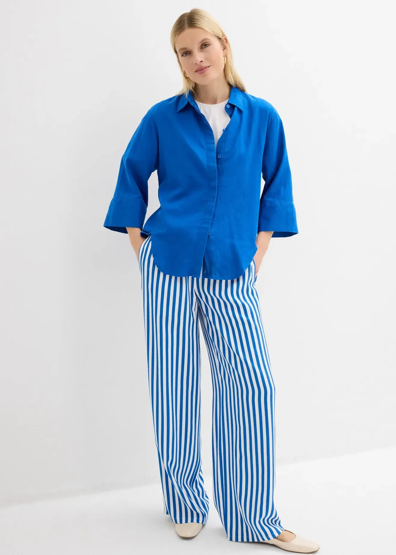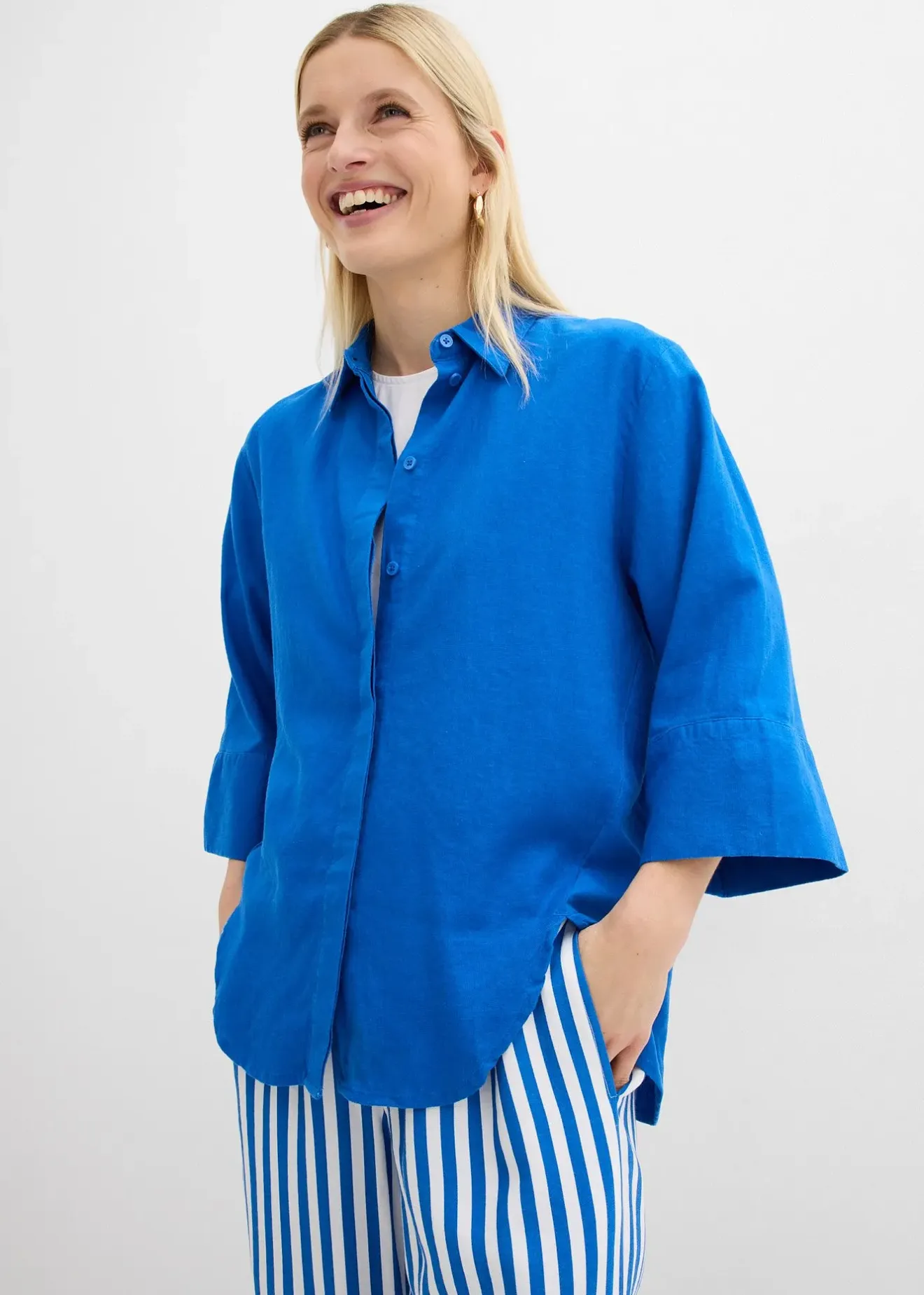 Chemisier large à coutures décalées vers l’avant, manches 3/4