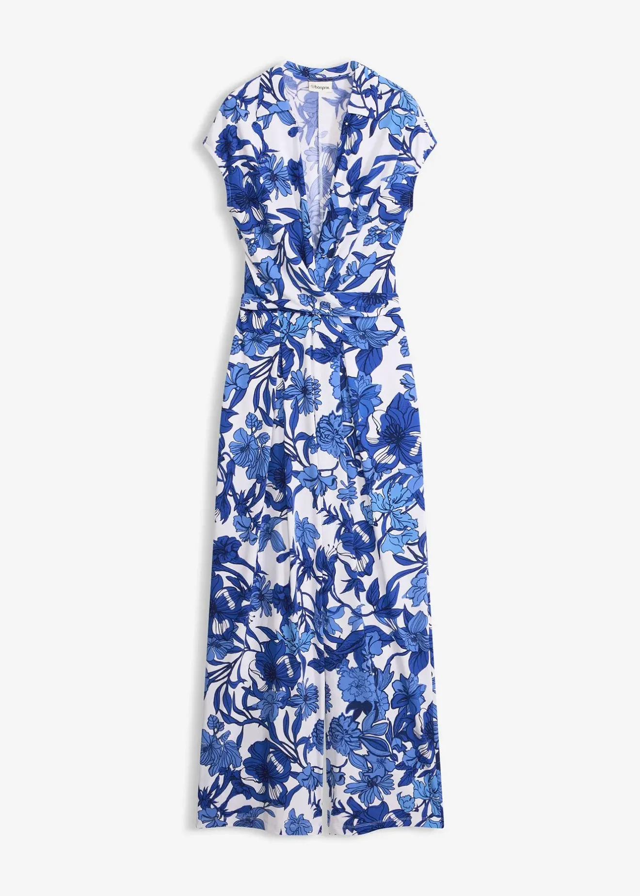 Combinaison en jersey à imprimé floral avec jambe large et drapé à l’avant sur la taille, à nouer selon les envies.