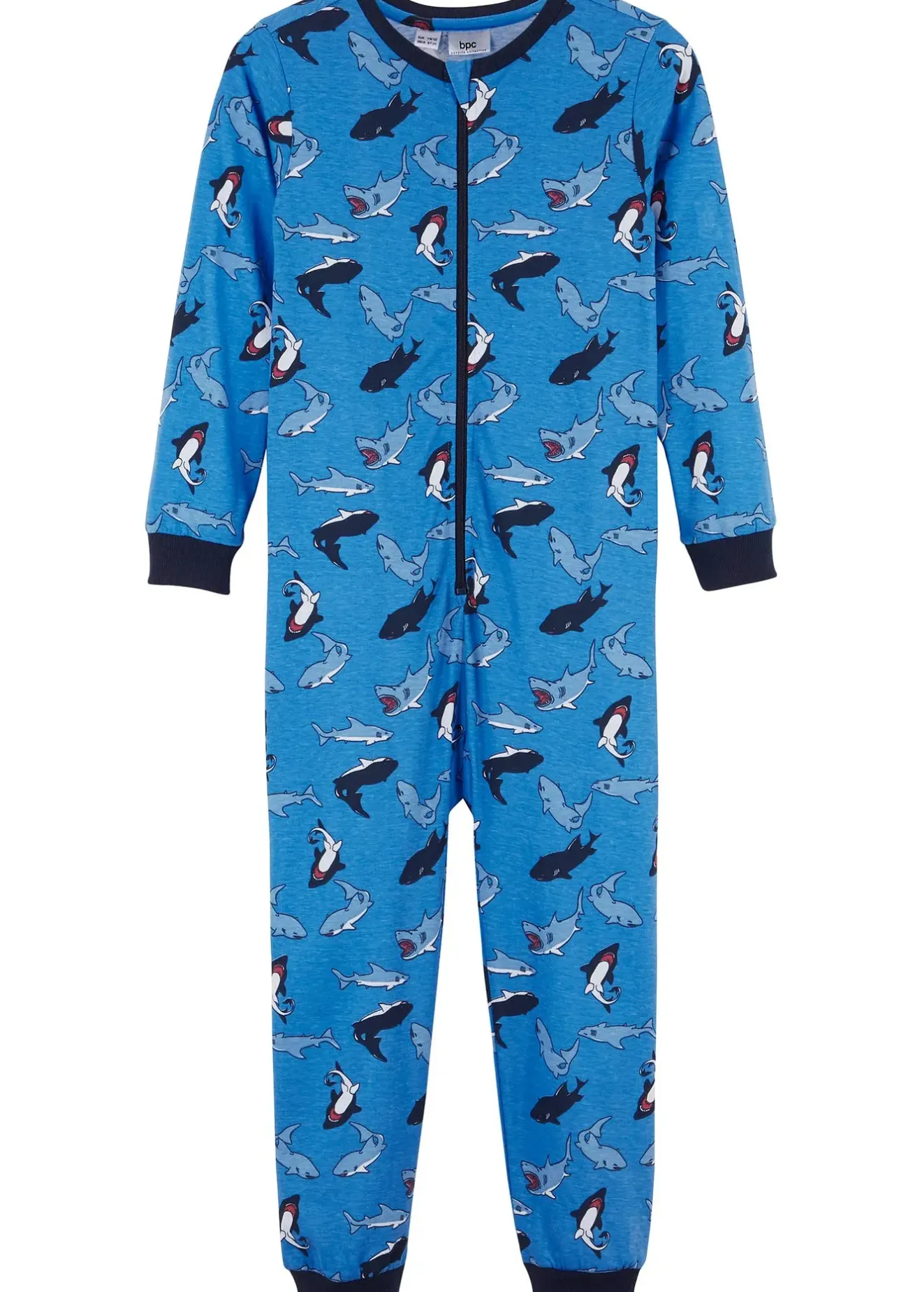 Jolie combipyjama en jersey avec un imprimé requin. Fermeture zippée devant.