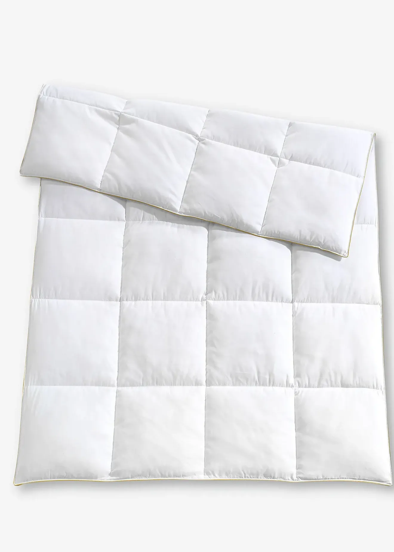 Couette toucher duvet pour un excellent confort. Différentes tailles au choix. Garnissage en polyester effet duvet au toucher pour un sommeil très reposant. Passepoil doré en bordure.