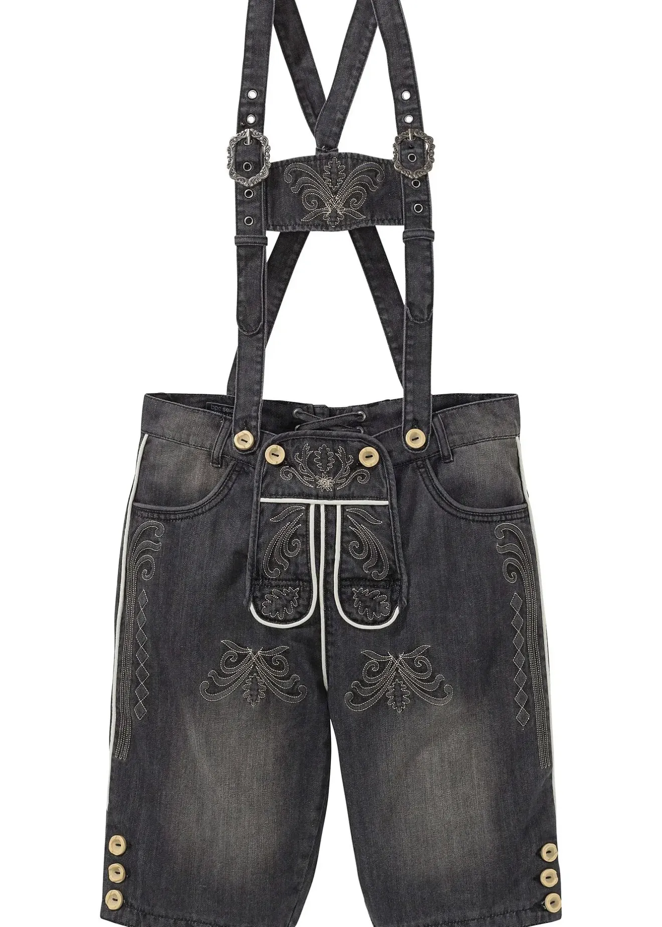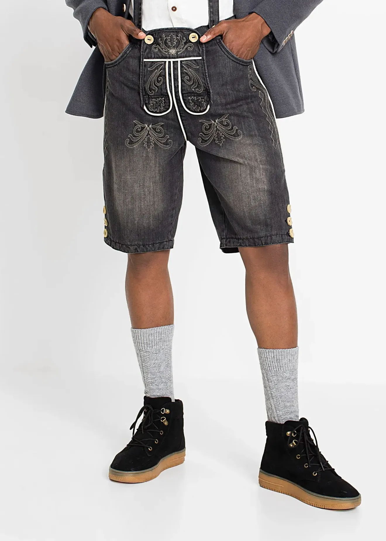 Ce bermuda en jean pour homme de la marque bpc selection est une alternative stylée à la culotte courte en cuir. Il se distingue par un tissu jean brodé et un joli délavage. Des boutons en imitation corne de cerf complètent son look traditionnel à la perfection. Ce bermuda en jean bavarois Regular Fit se ferme au niveau du pont devant. Les bretelles réglables ornées de grosses boucles accentuent le style folklorique.