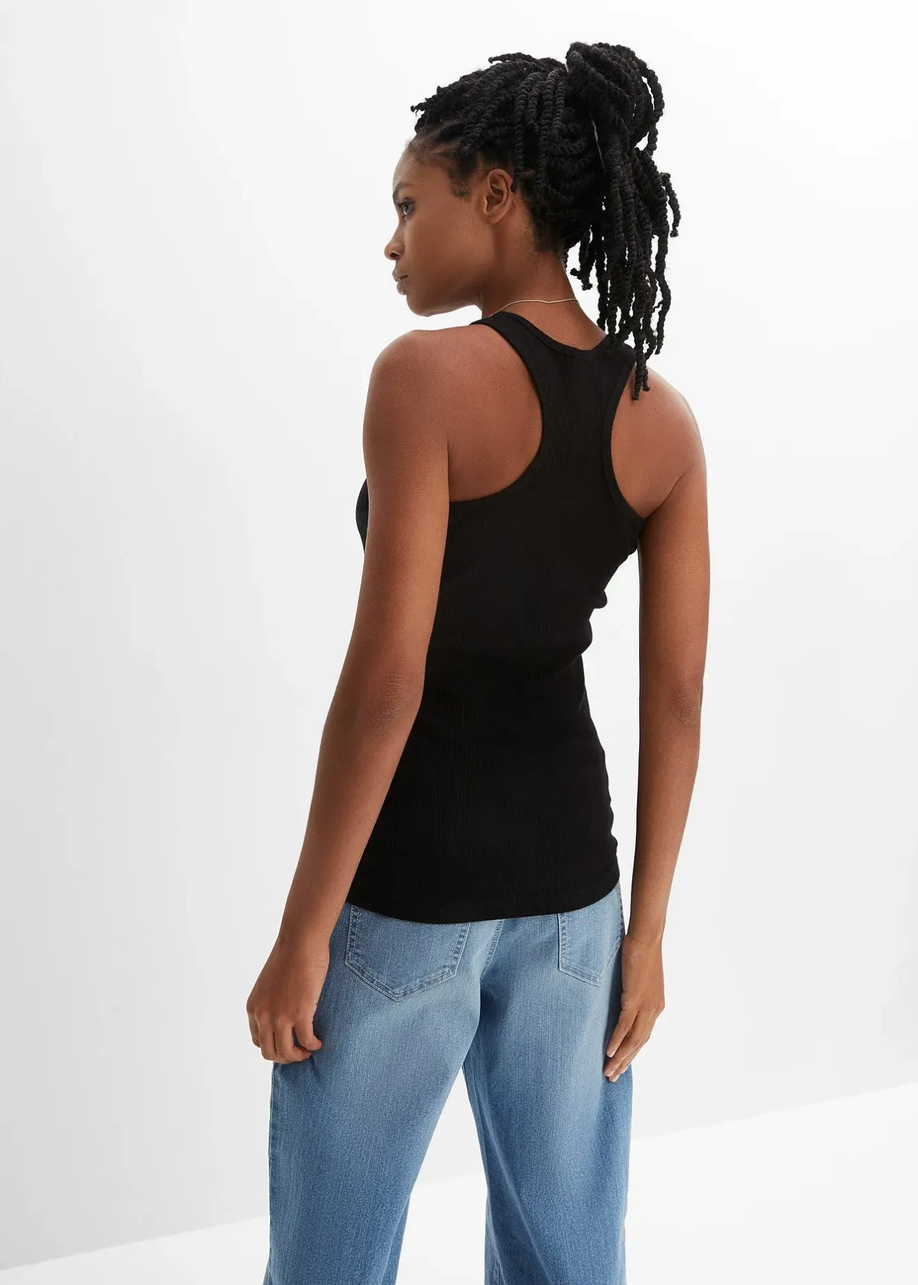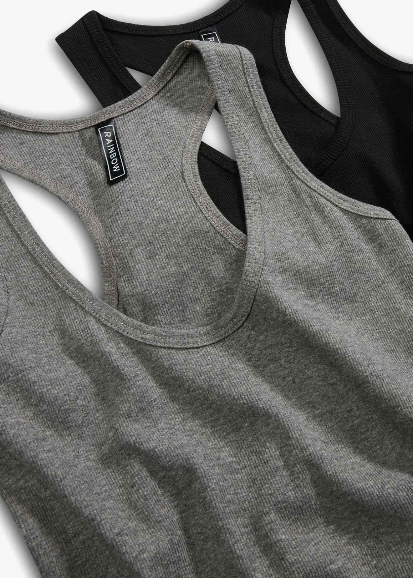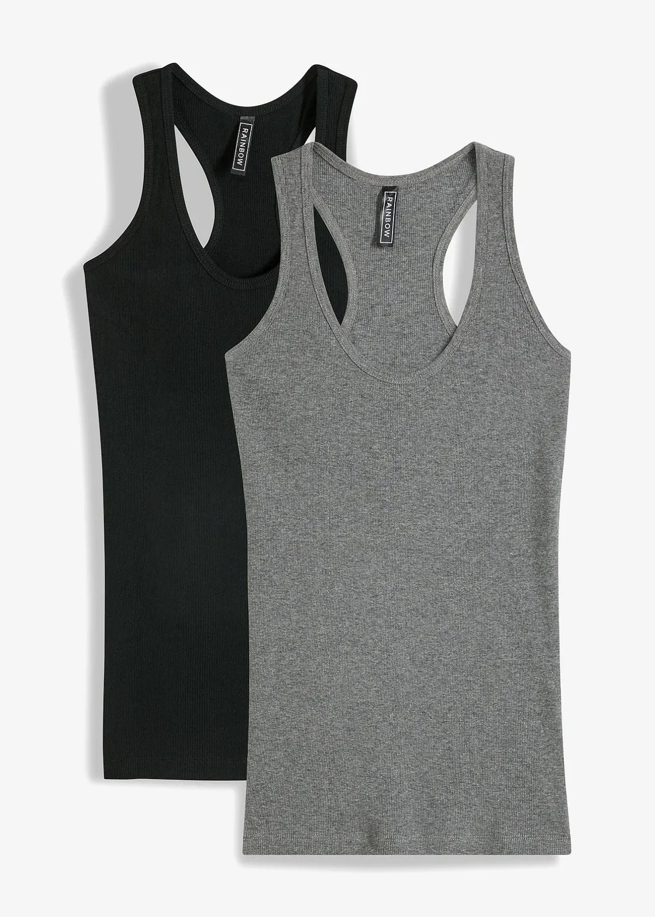 Débardeur près du corps à dos nageur pour un look sportif. Basique idéal pour des tenues décontractées en été avec un chino ou un jean et de baskets. Ce débardeur côtelé est proposé par lot pratique de deux exemplaires.