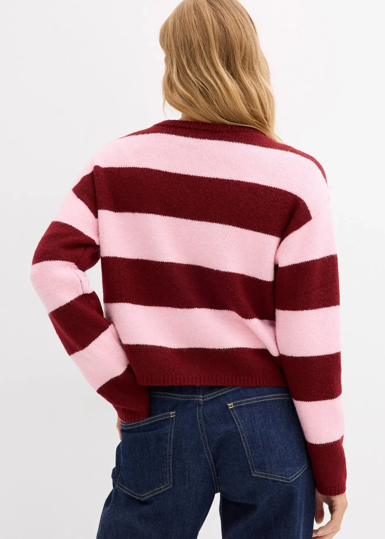 Gilet court et boutonné en fine maille rayée
