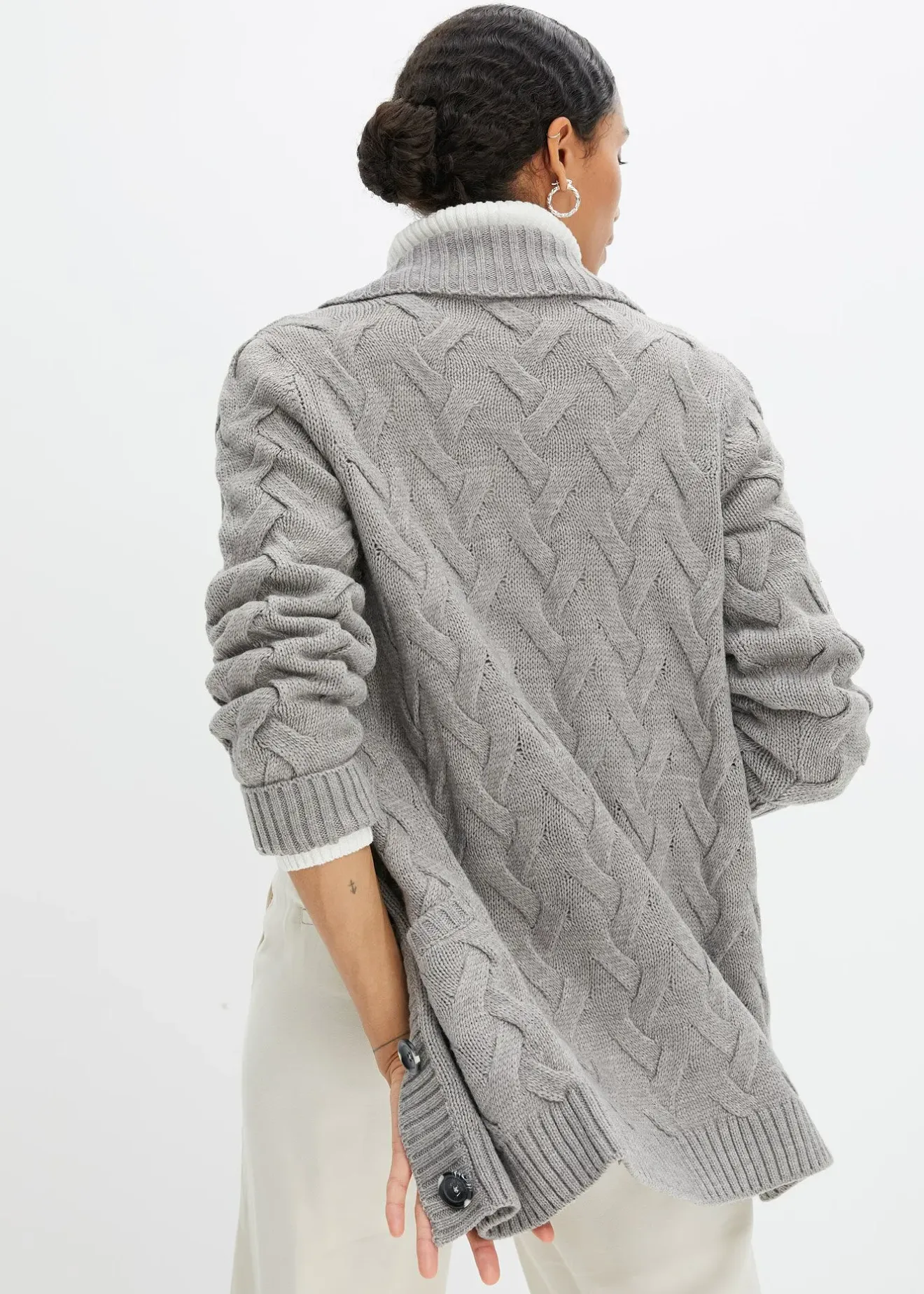 Cardigan long douillet avec patte de boutonnage, col châle et poches plaquées
