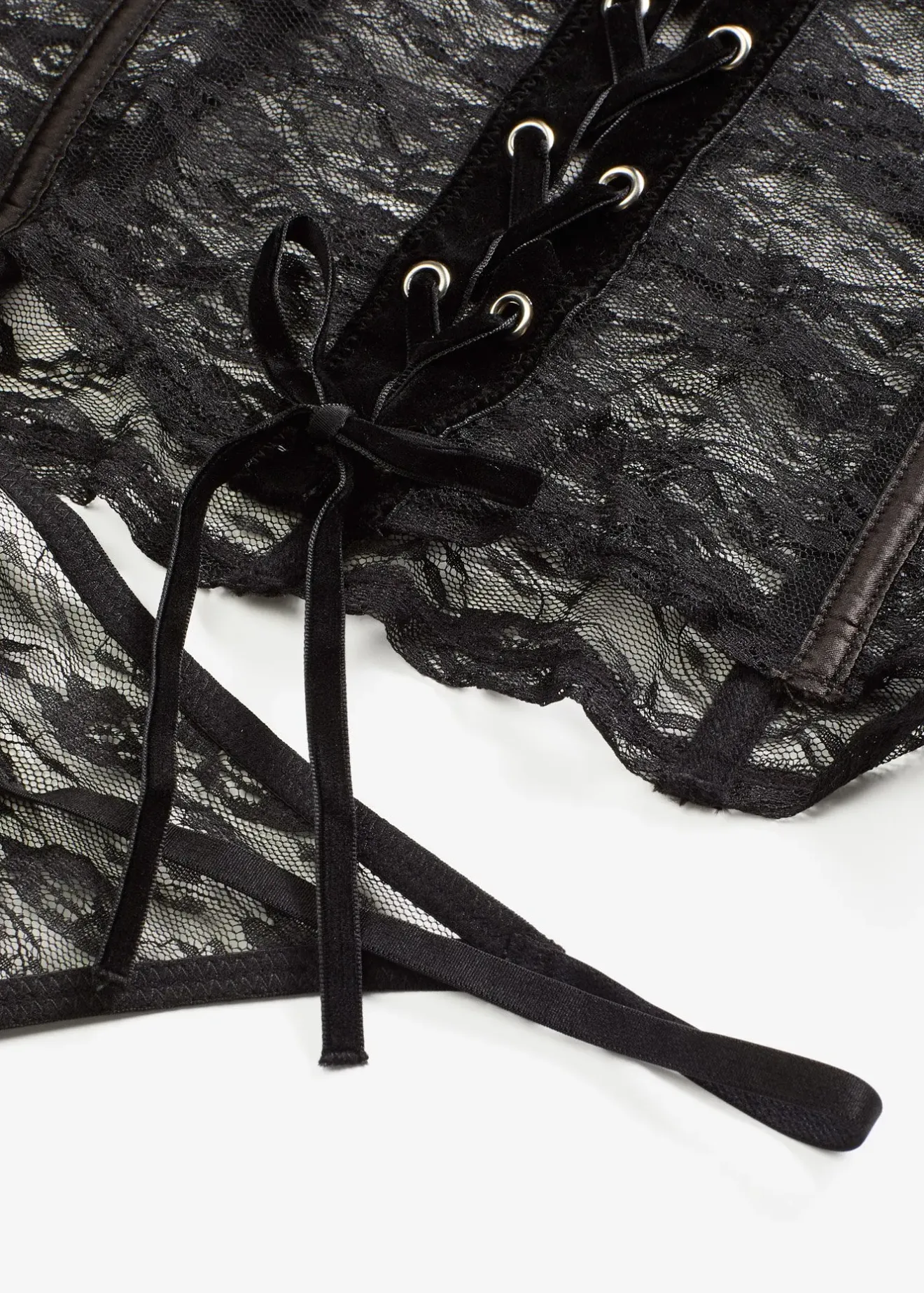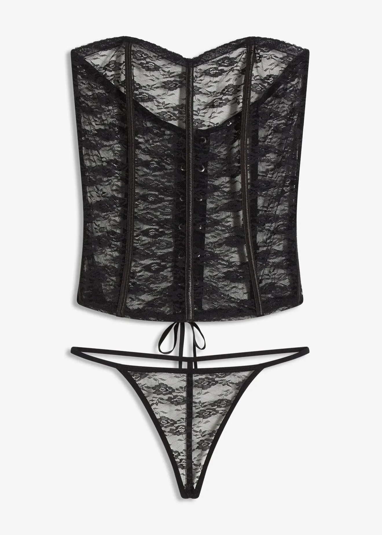 Guêpière et string en dentelle (ens. 2 pces) avec laçage dans le dos