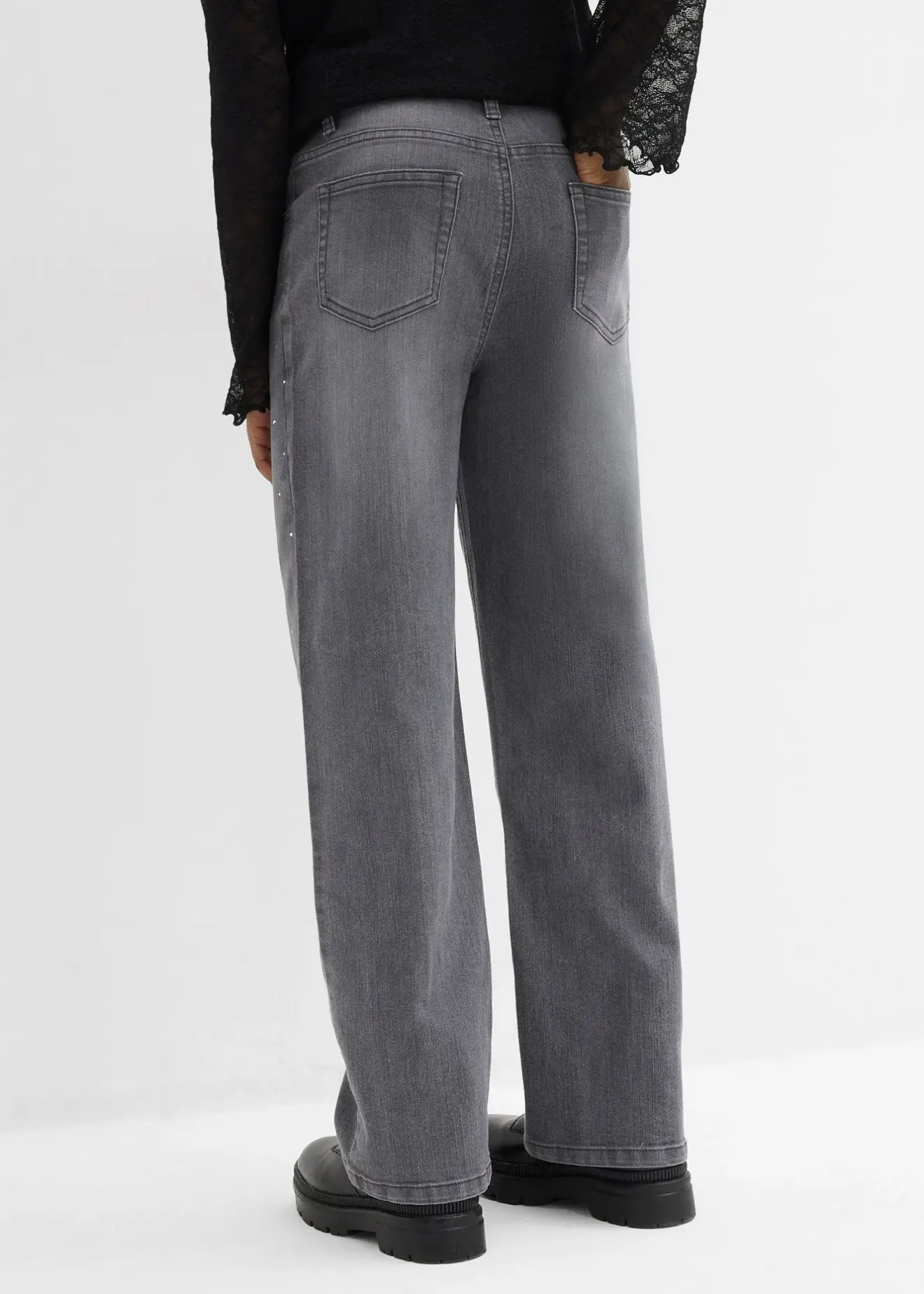 Jean ample taille mi-haute, orné de strass, pour fille