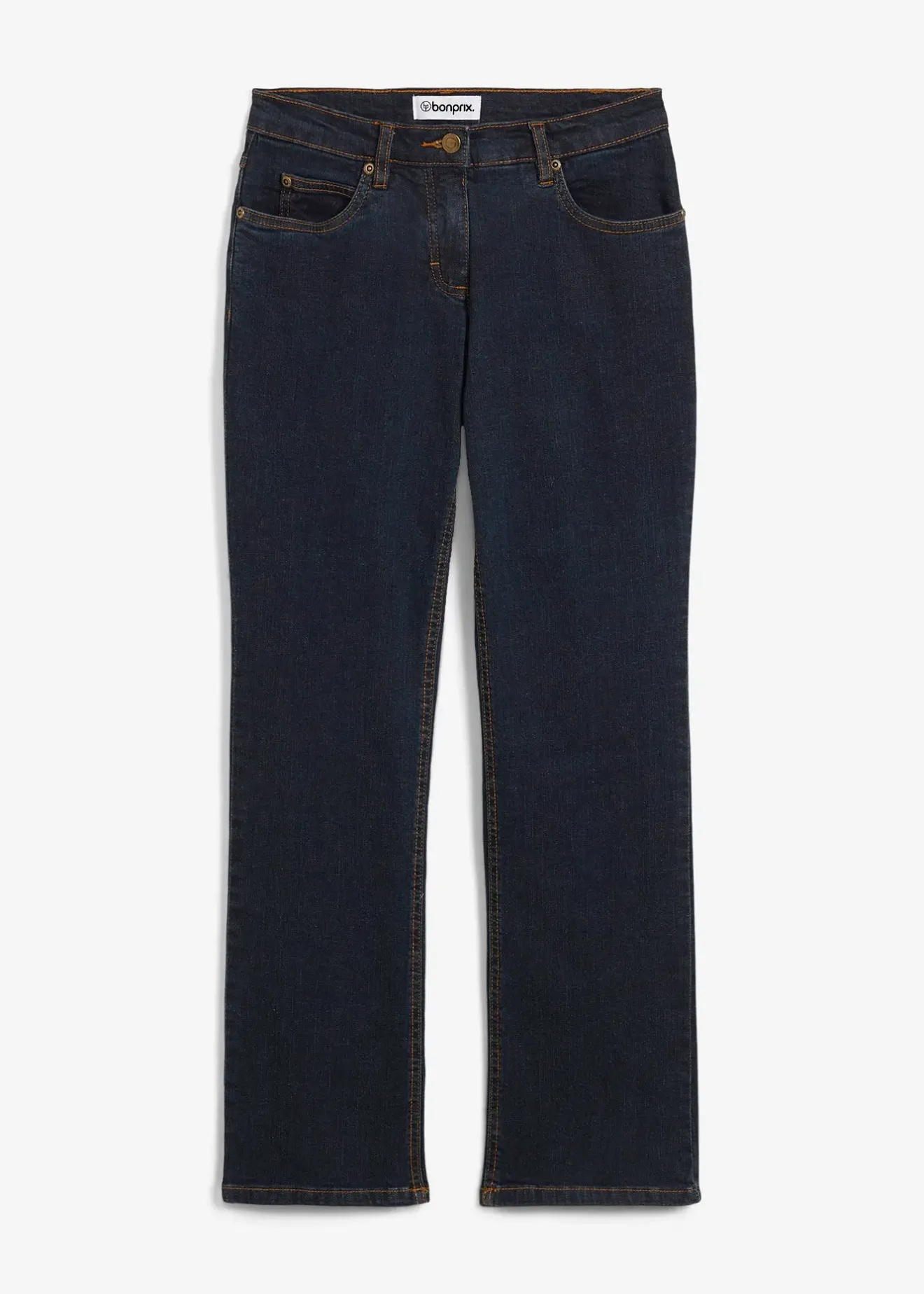 Jean stretch basique et décontracté, jambes droites et hauteur de taille confortable