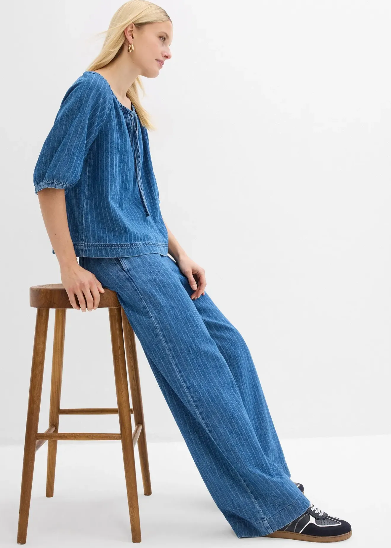 Jean large à rayures, taille mi-haute