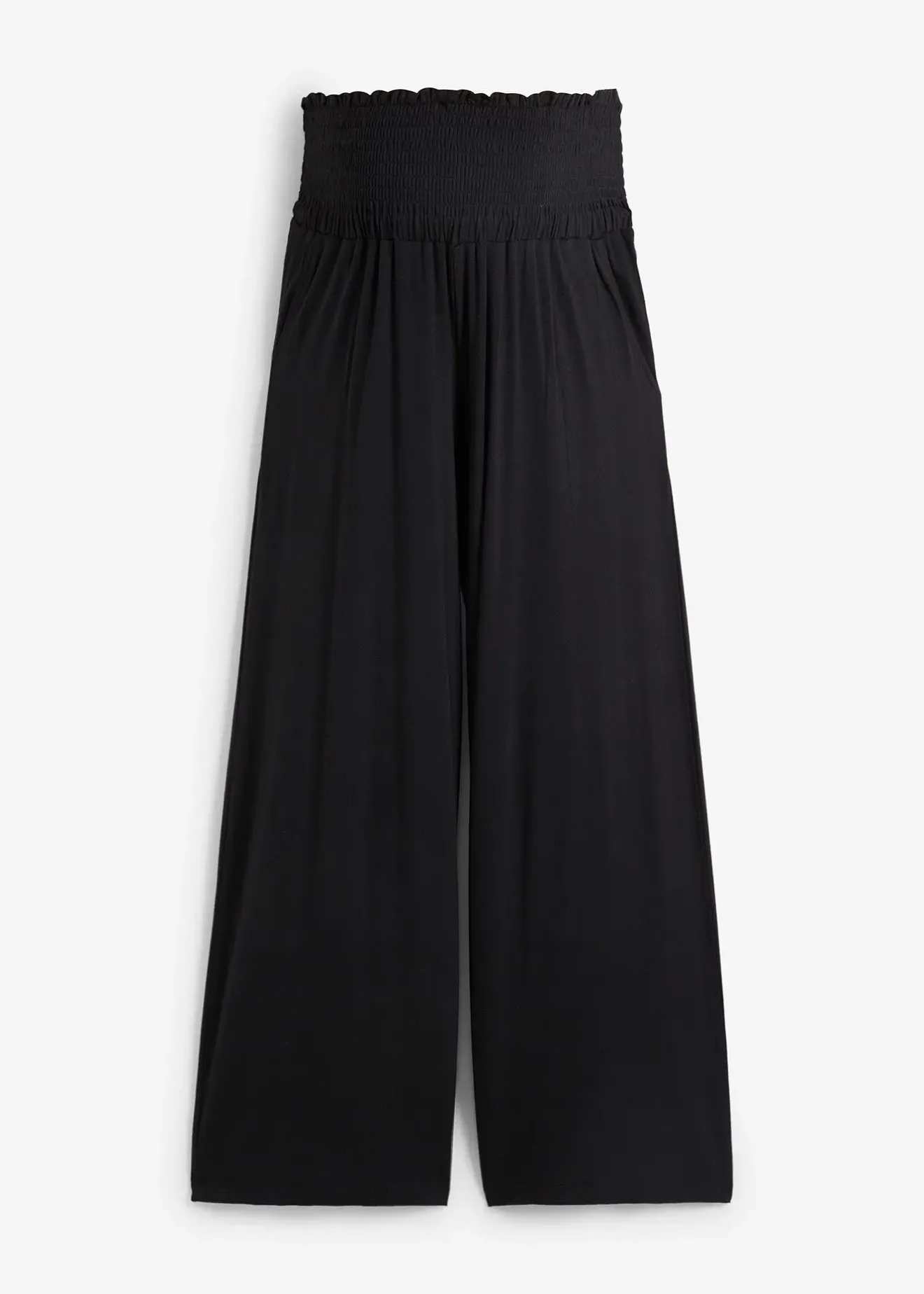 Pantalon doux en jersey viscose un peu extensible pour un grand confort avec une taille smockée qui s’adapte en douceur à chaque mois de grossesse. Poches pratiques sur le devant. Coupe confortable avec des jambes larges.