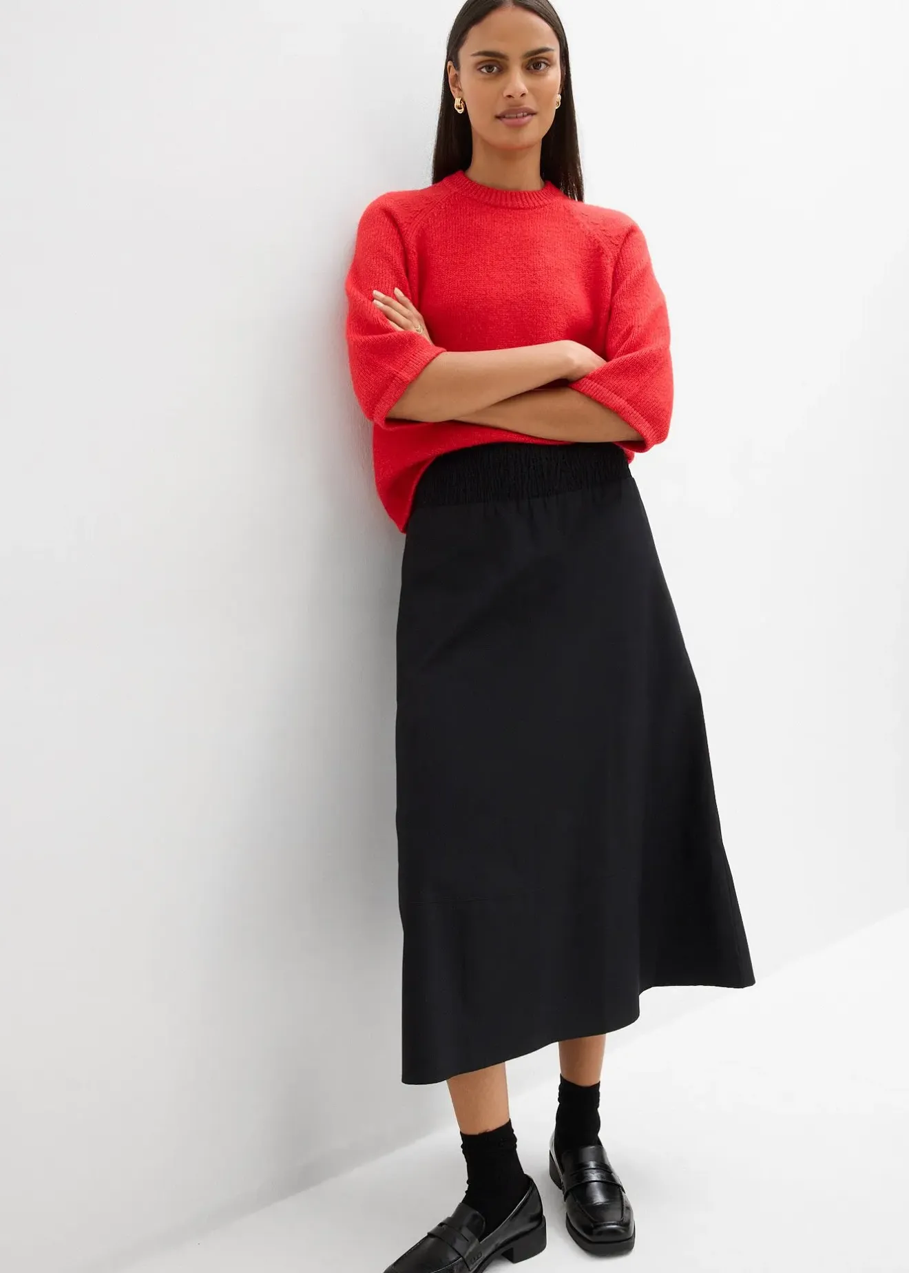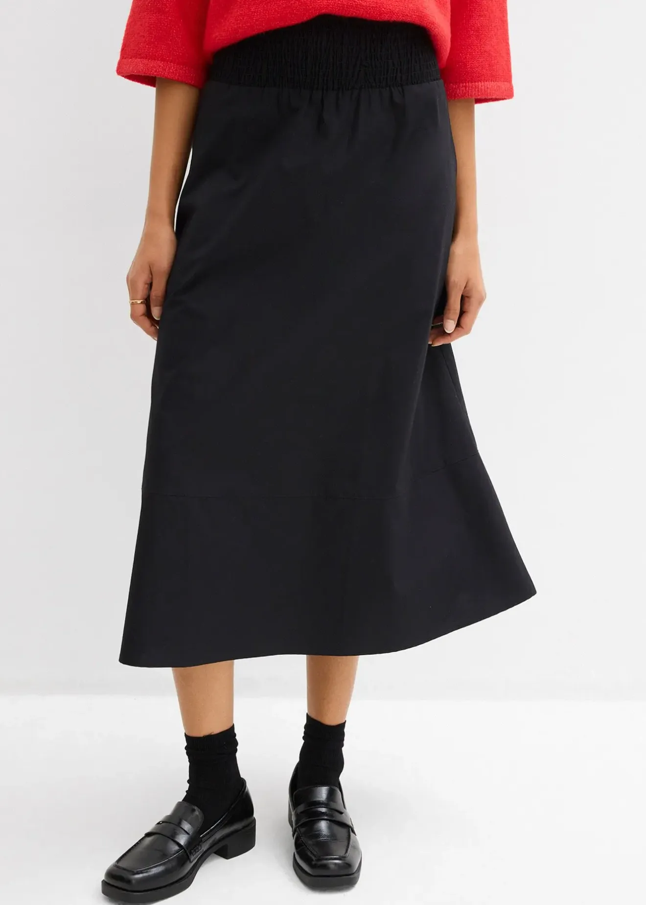 Jupe midi évasée en coton avec poches