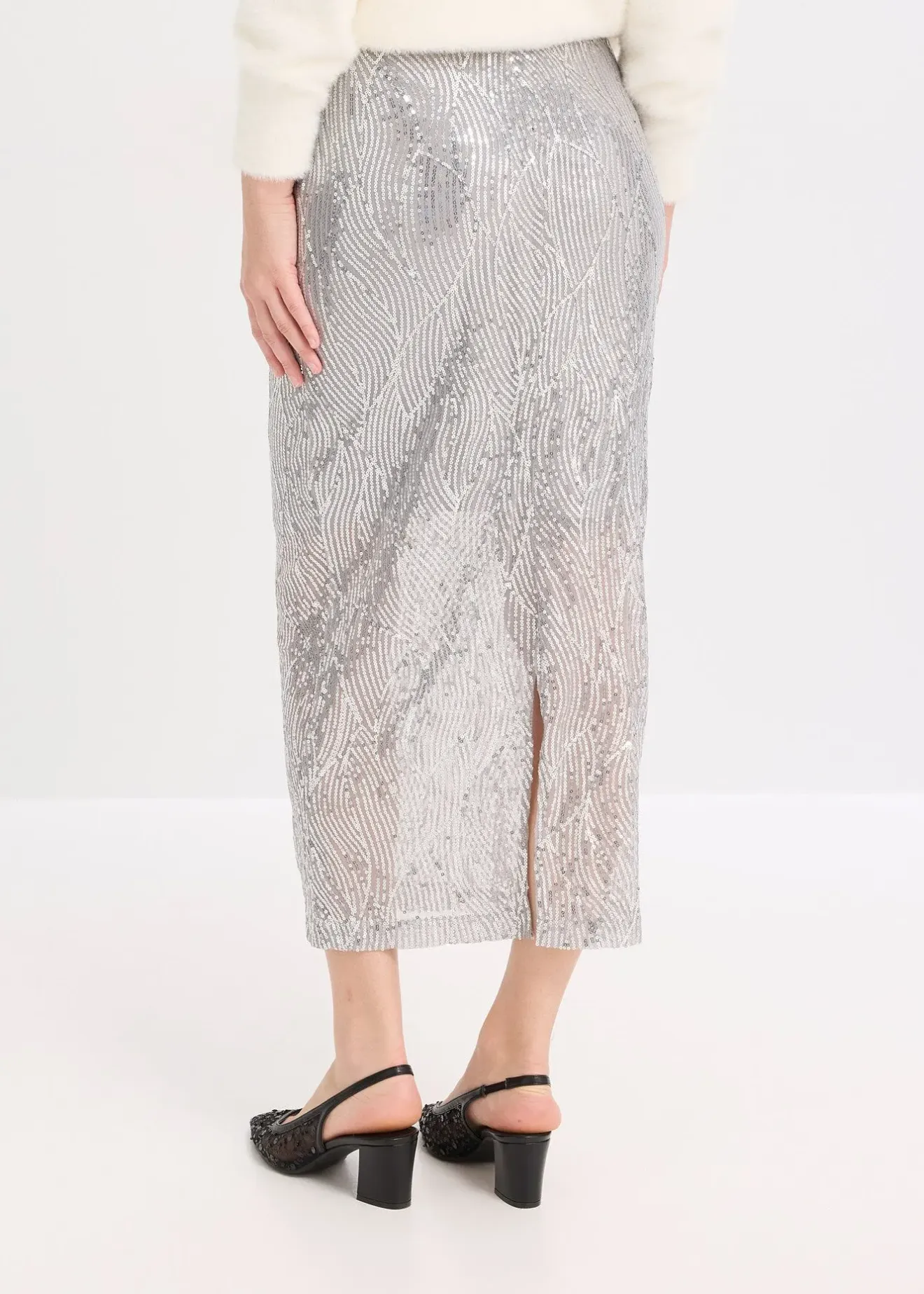 Jupe midi tendance et doublée à sequins et taille élastiquée