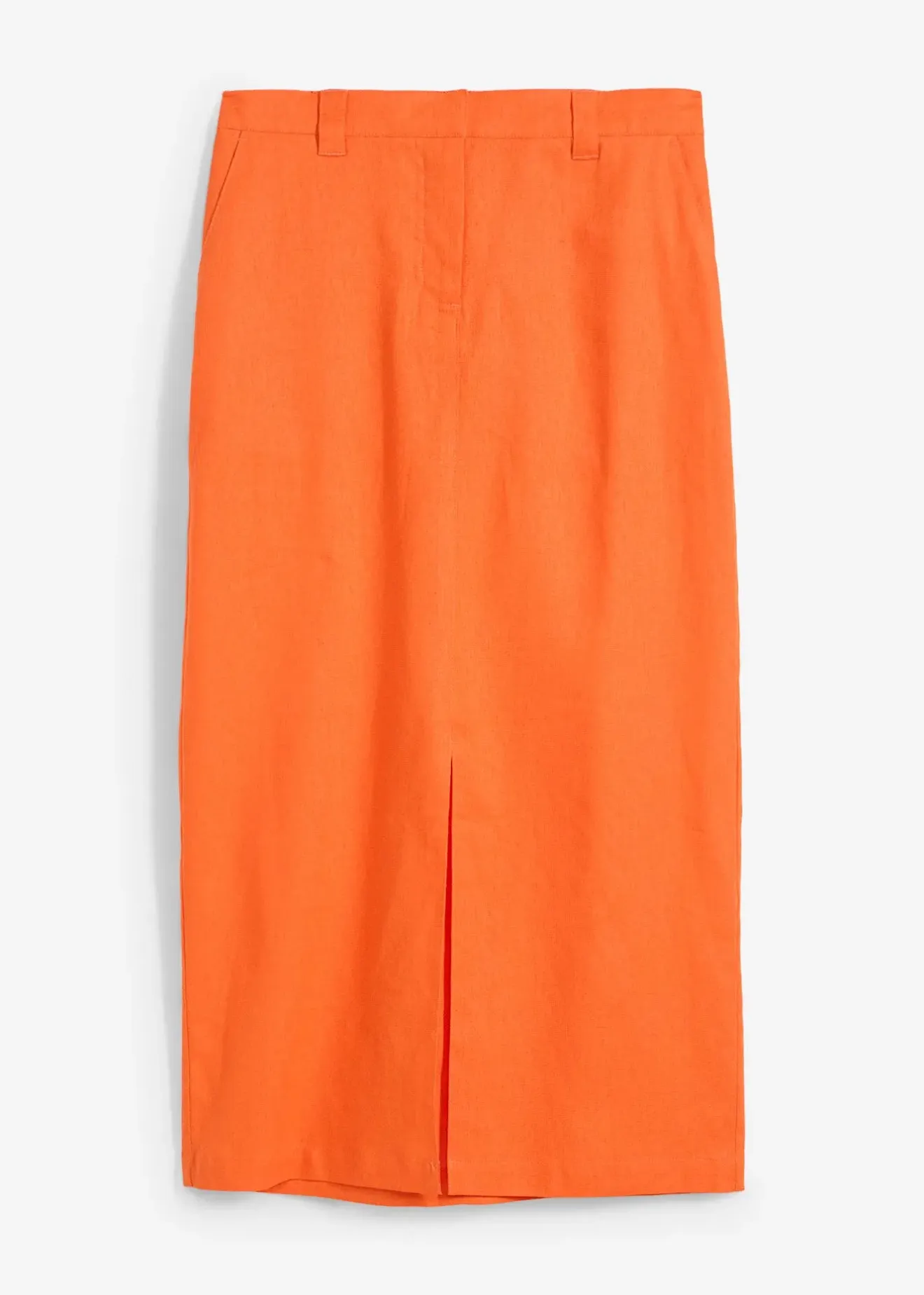 Jupe midi fendue devant avec poches et taille élastiquée à l’arrière